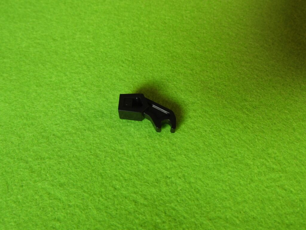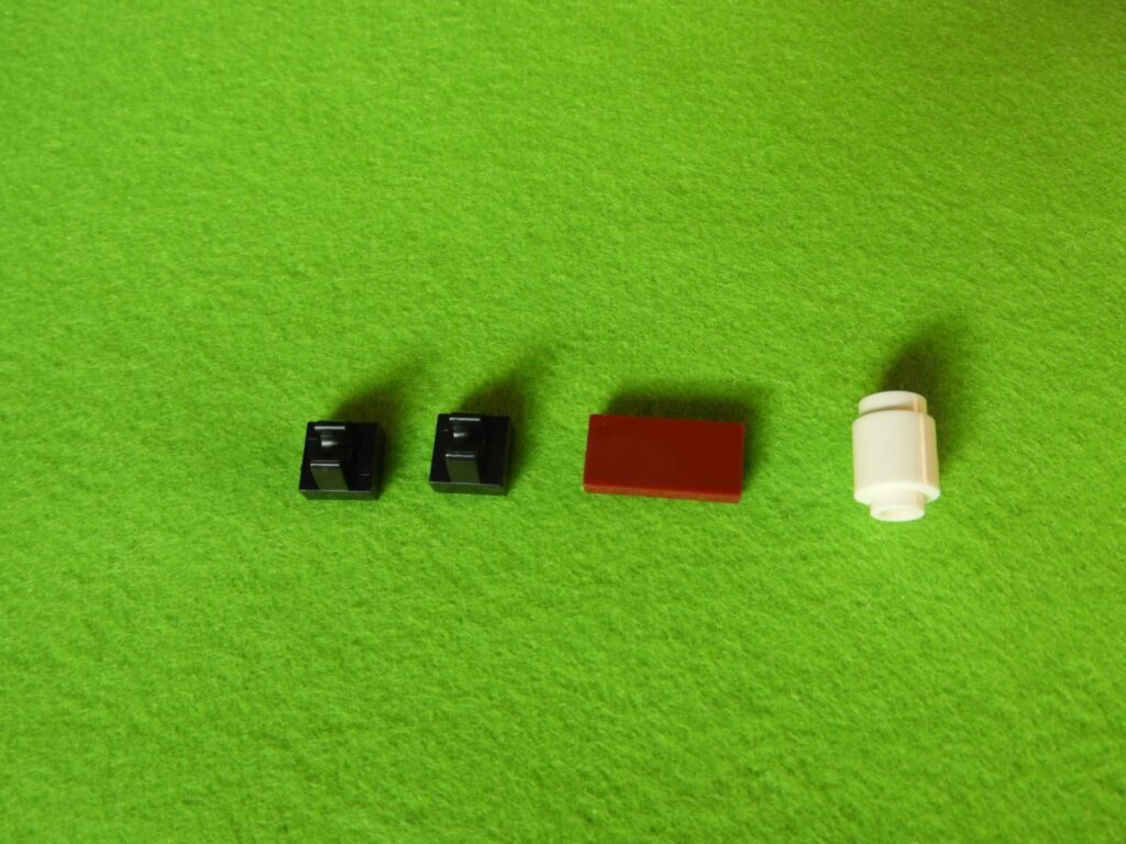 工程4番で使用するブロックを用意します。1.用意した黒ブロック2個を工程3番で組み立てたブロックに取り付けます。黒T字ブロックは、下記写真左の青ブロックを手で押さえながら少し力を入れてグッと押し込むとはまります。丸黒ブロックは白ブロックの上にとりつけます。