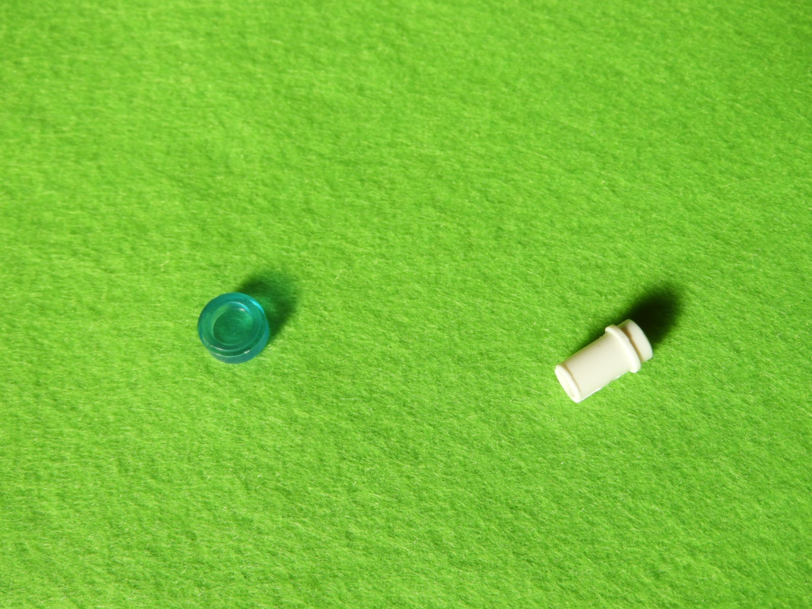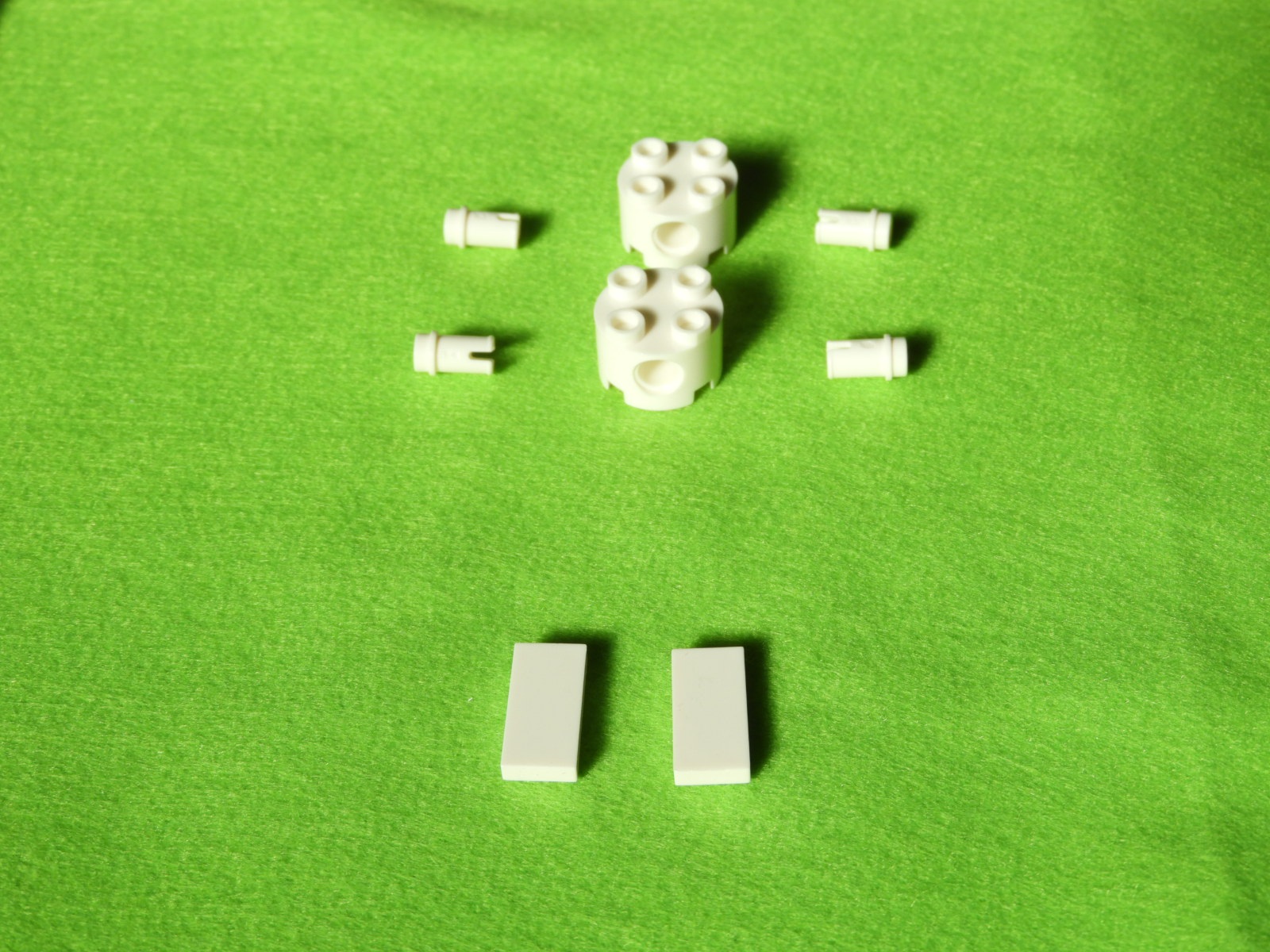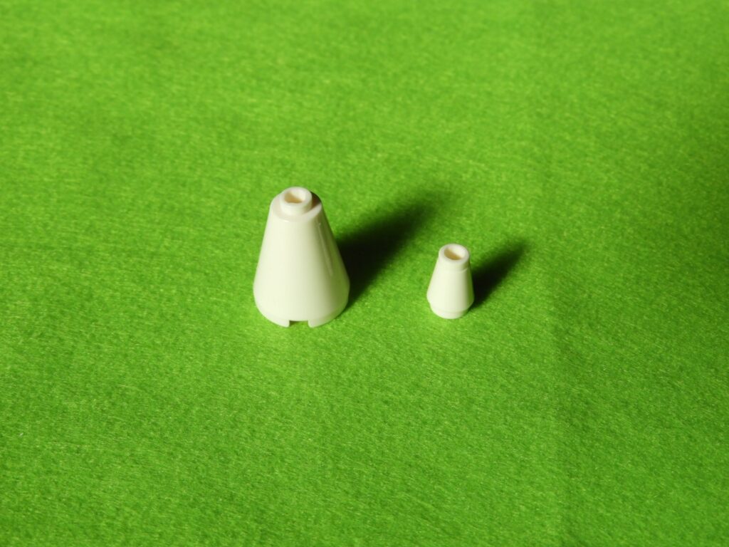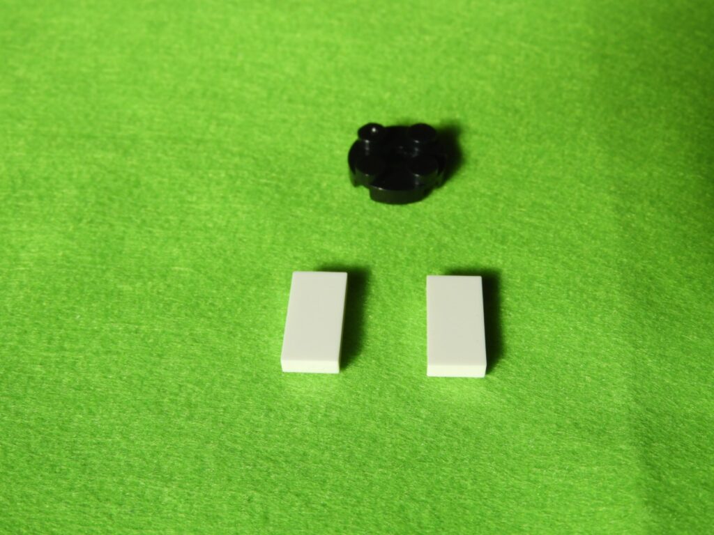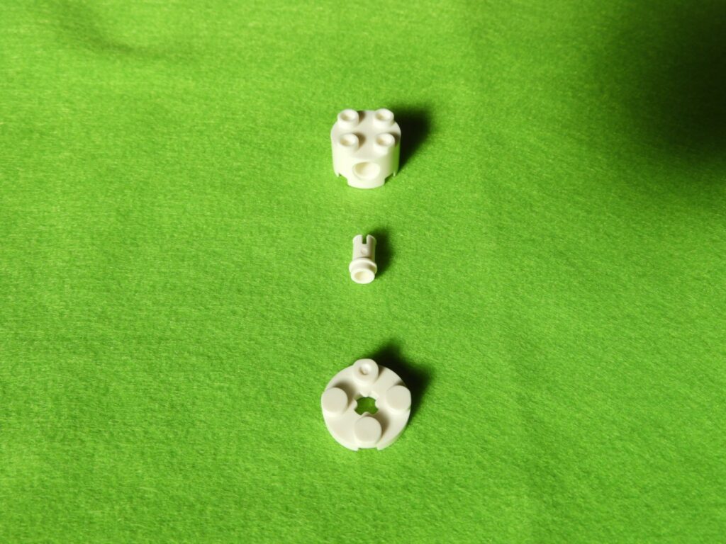 1.大きい円柱ブロック横に空いている穴に、小さい円柱ブロックを2個取り付けます。これが2セット出来上がります。
