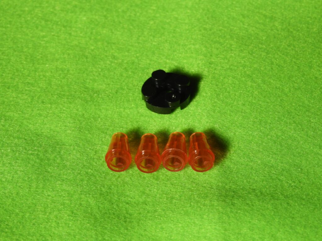 1.黒ブロックの下に、オレンジブロック4個を取り付けます。