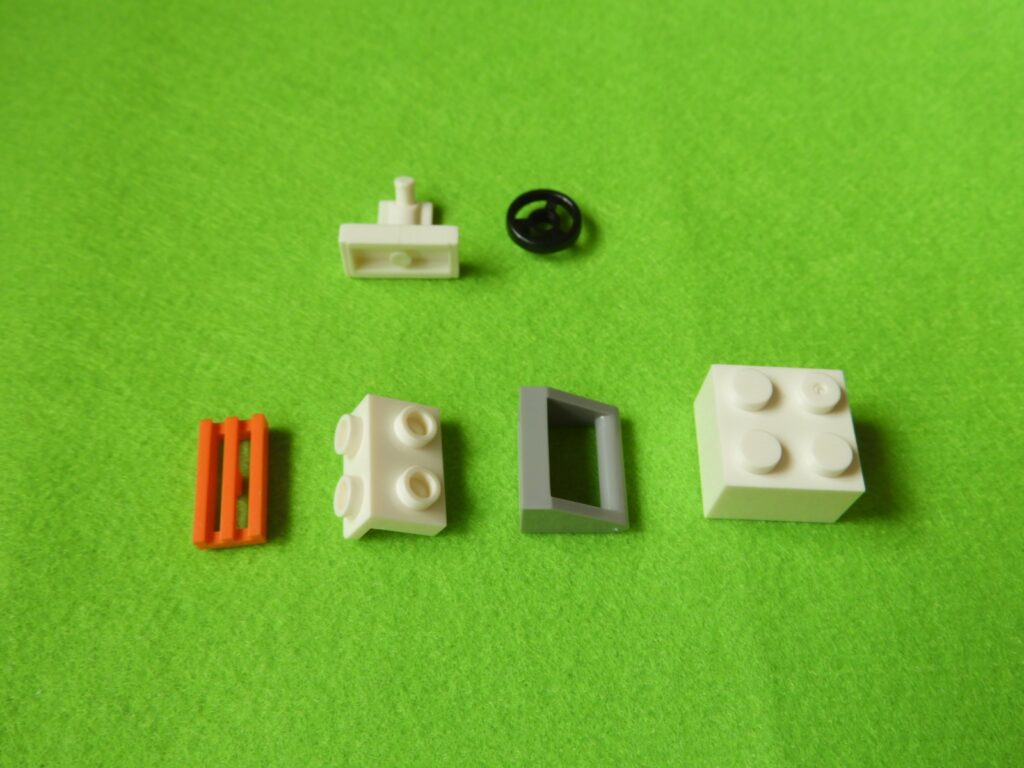 1.最初に白ブロックにハンドルを取り付けます。