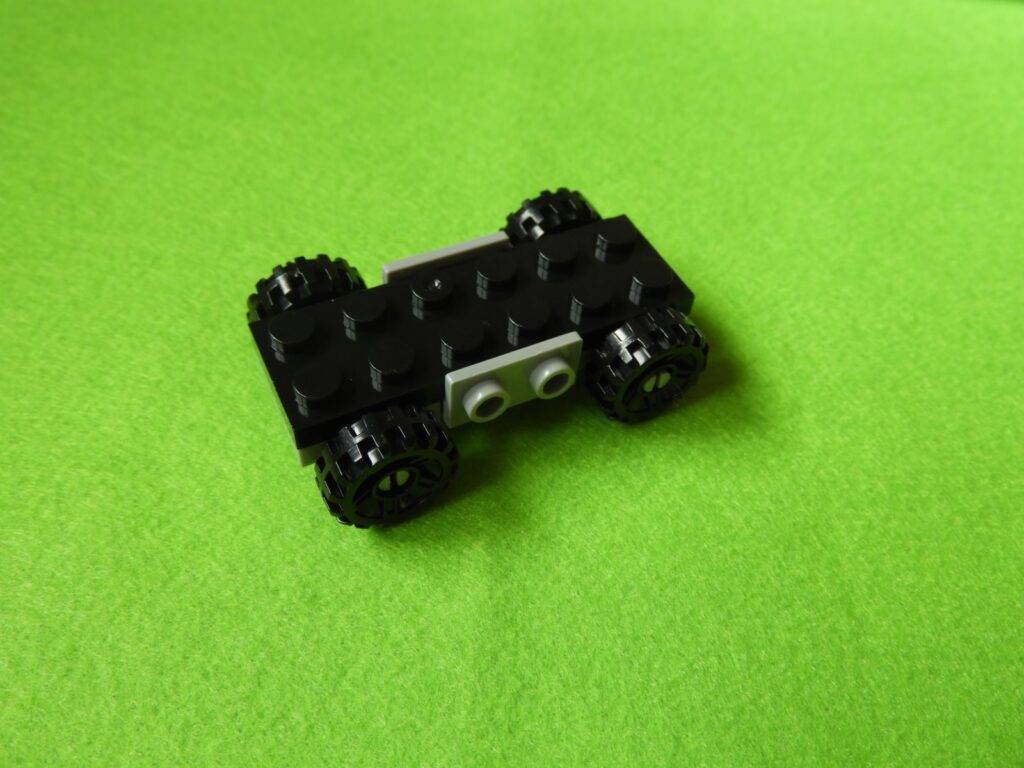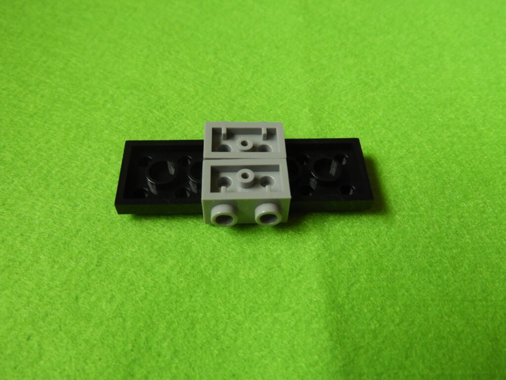 2.工程1番で組み立てたブロック2セットを上記黒ブロックの下に取り付けると工程2番は完成します。