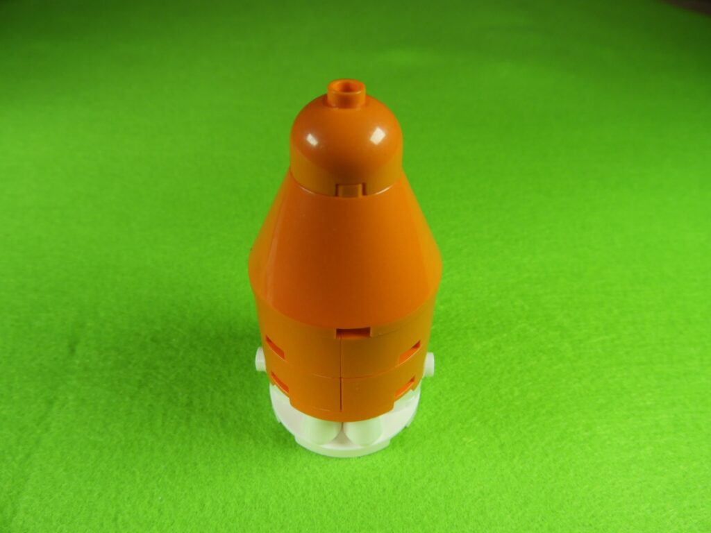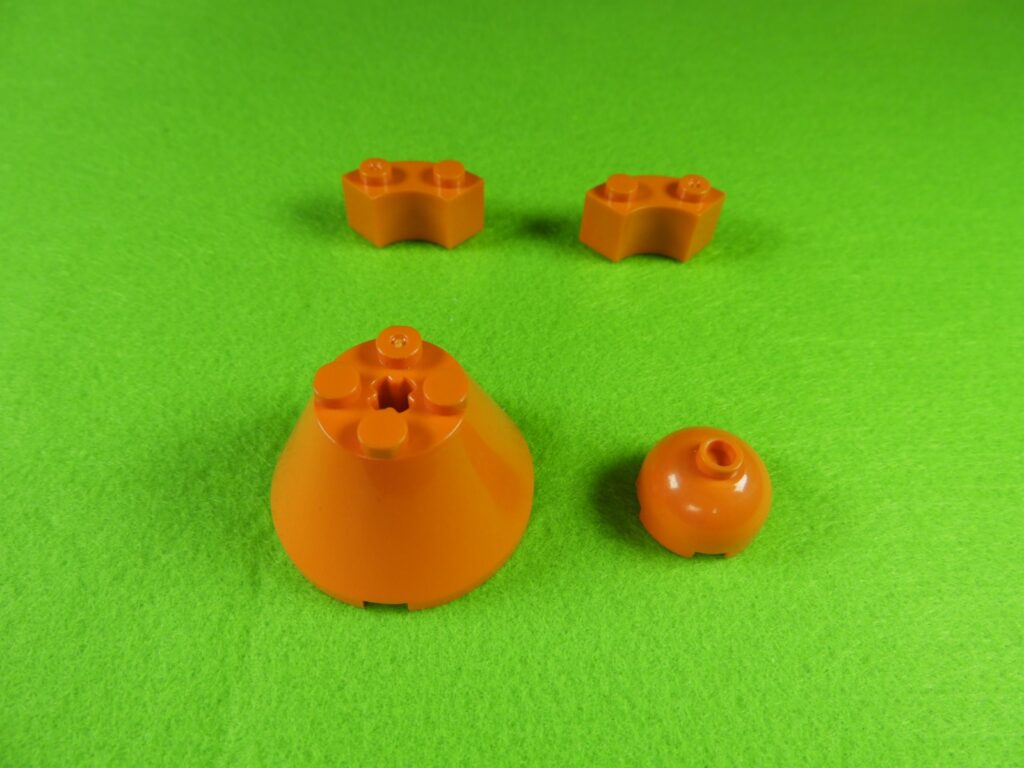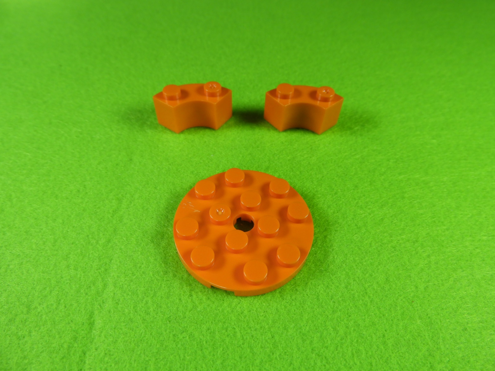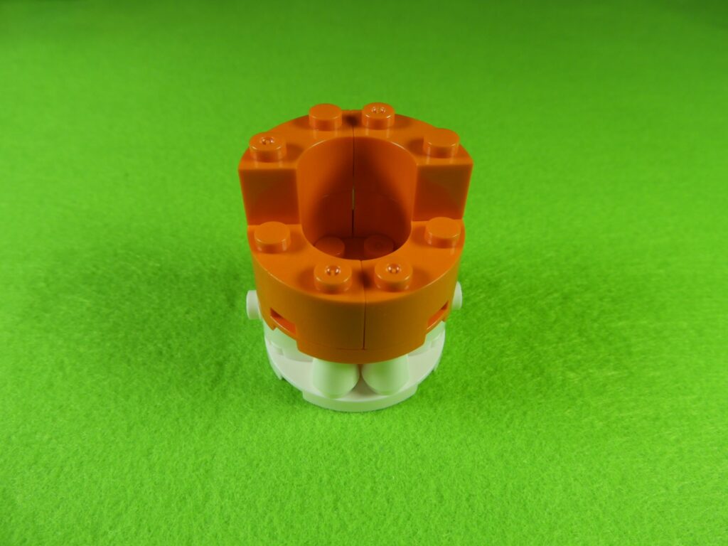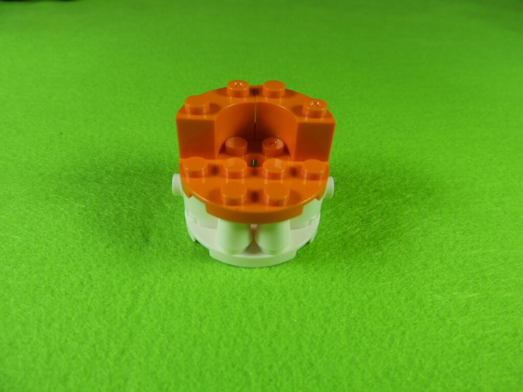 1.工程10番で組み立てたブロックの上に丸オレンジブロックをのせます。その上に小さいオレンジ2個をのせます。