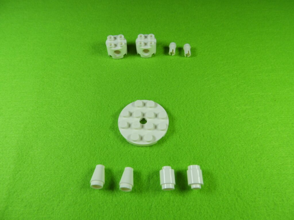 2.丸い板ブロックにすべての白ブロックを取り付けると工程10番は完成します。