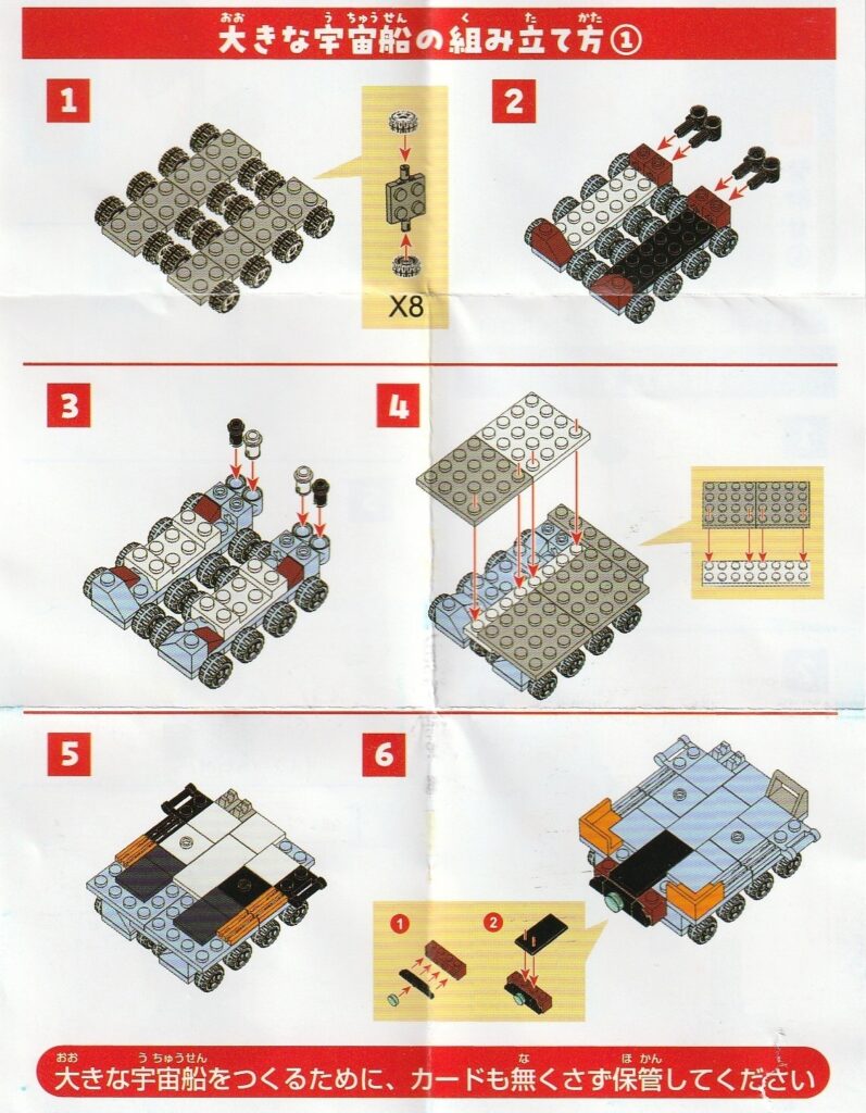 説明書はこちら、大きな宇宙船の組み立て方①の説明書はNo.1発射台①の裏面です。