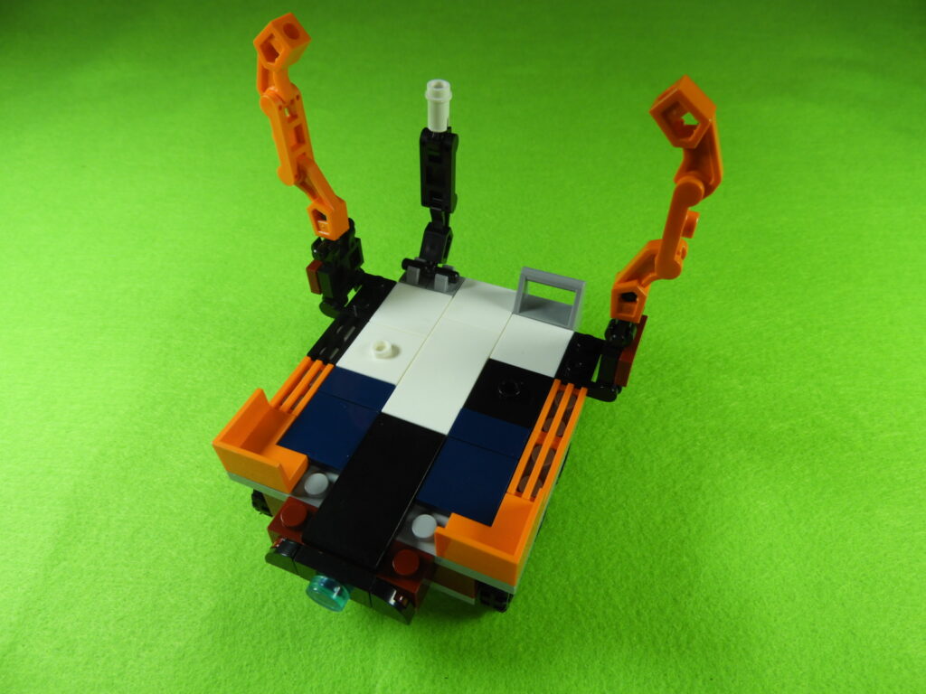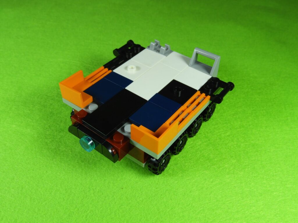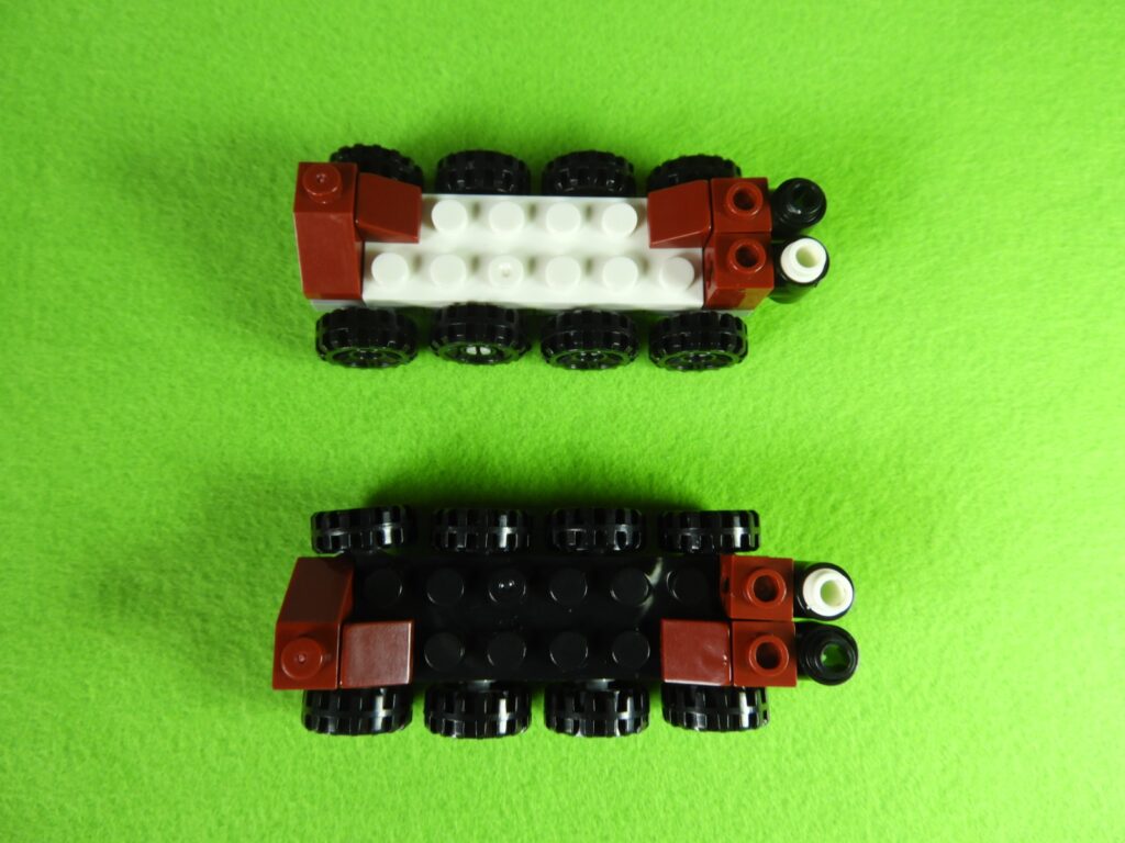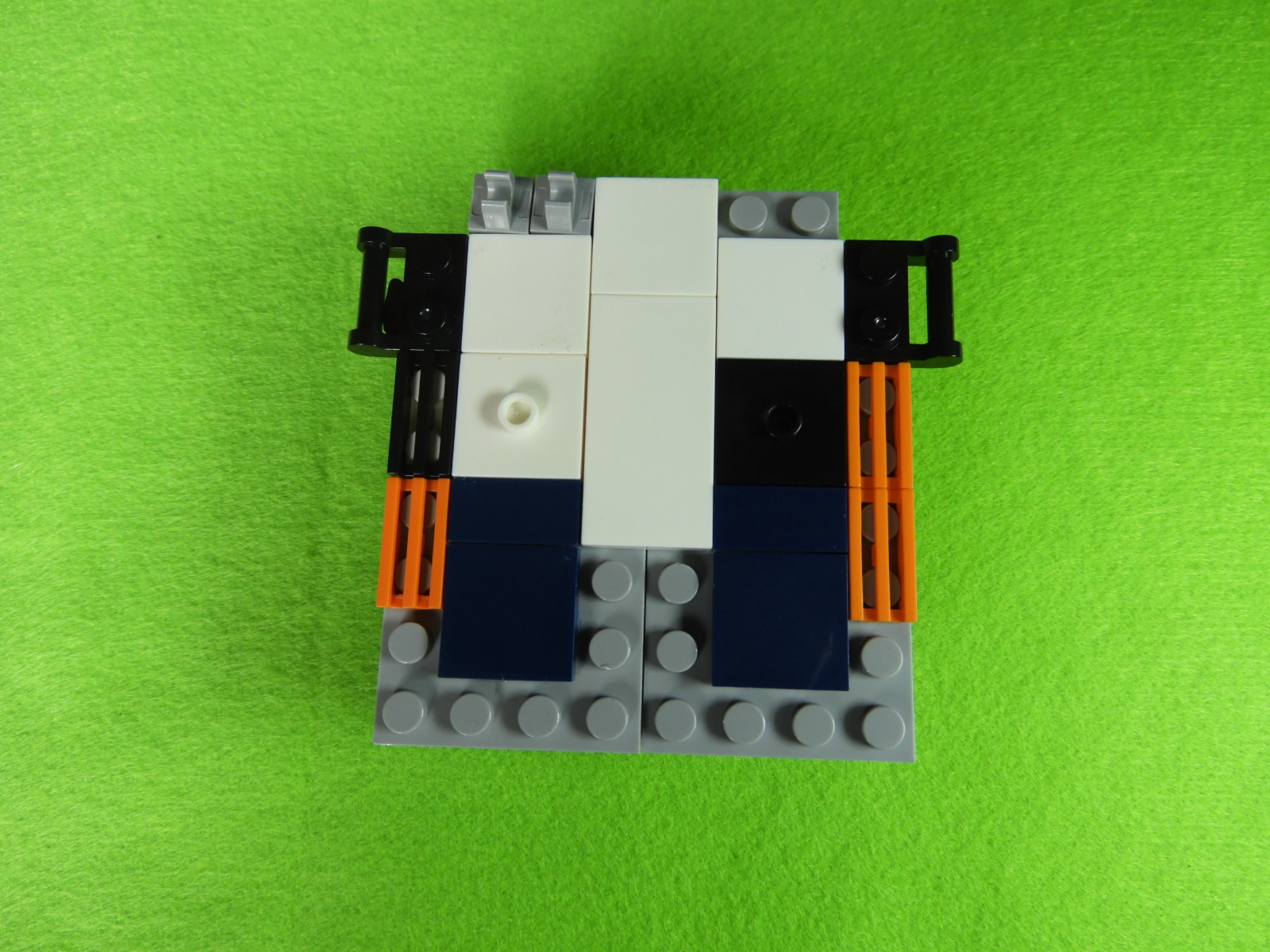 2.最後に、大きい白ブロックを車体の真ん中に取り付けると工程3番は完了します。