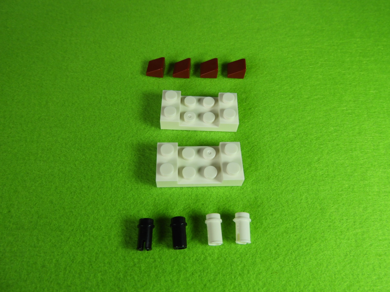 1.用意した大きい白ブロック2個以外すべてを車体に取り付けます。