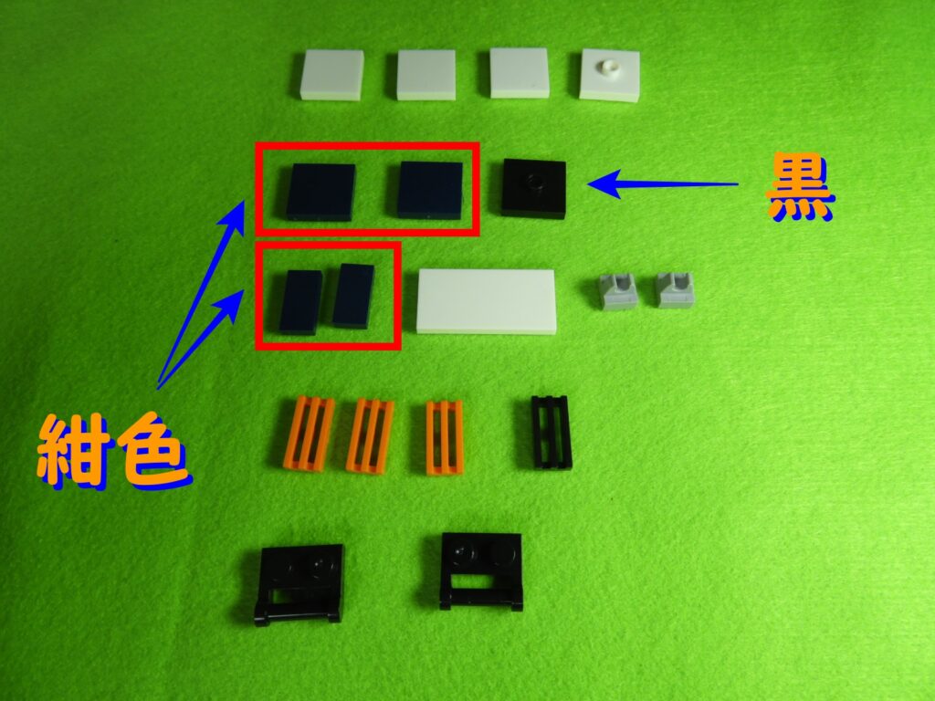 工程5番で使用するブロックを用意します。写真では色がわかりにくいですが、赤枠のブロックは紺色ブロックになります。