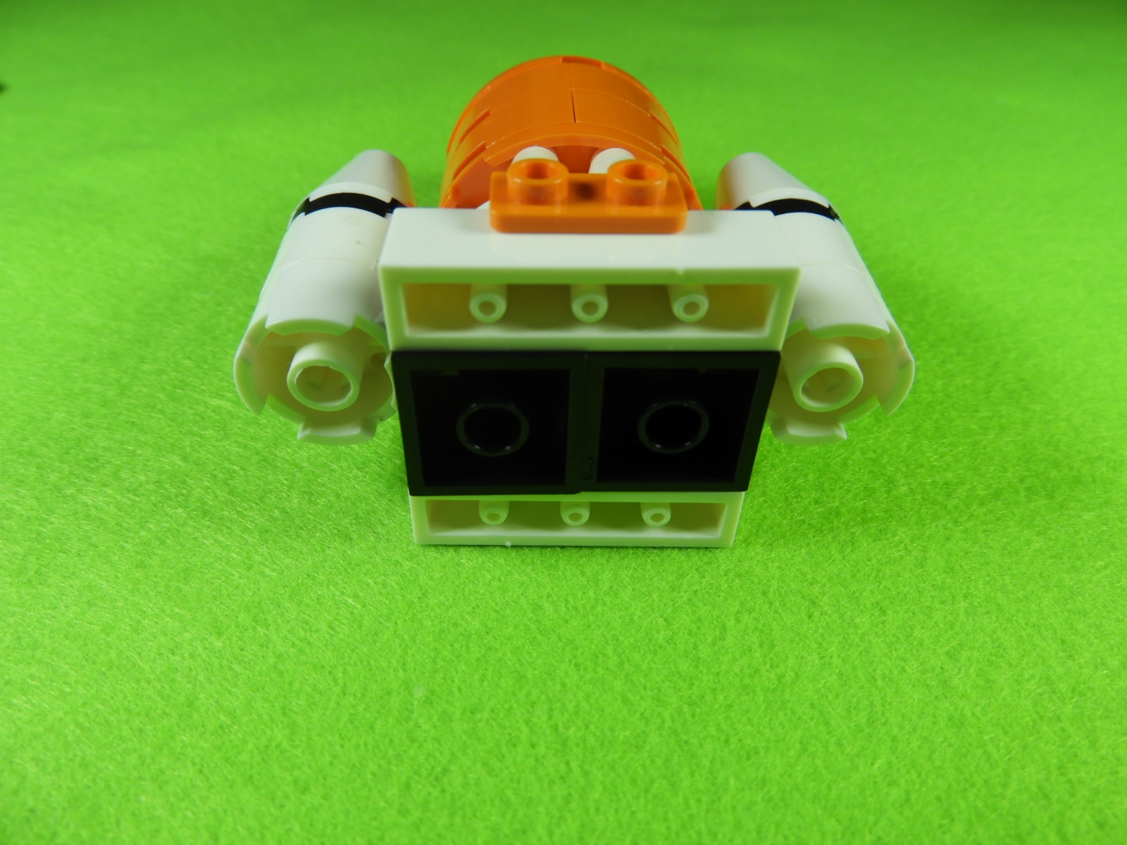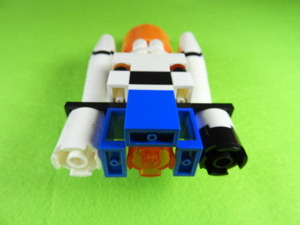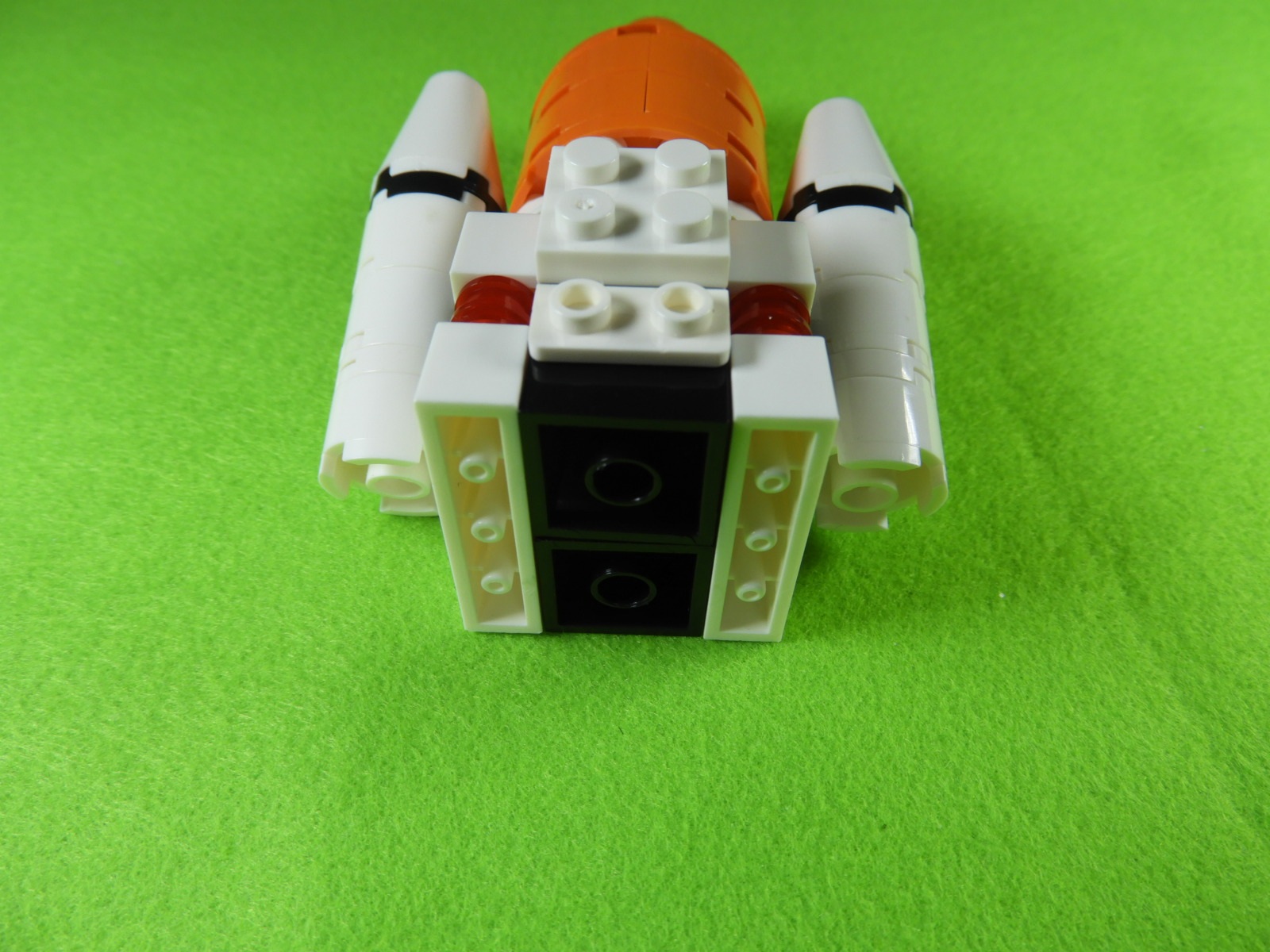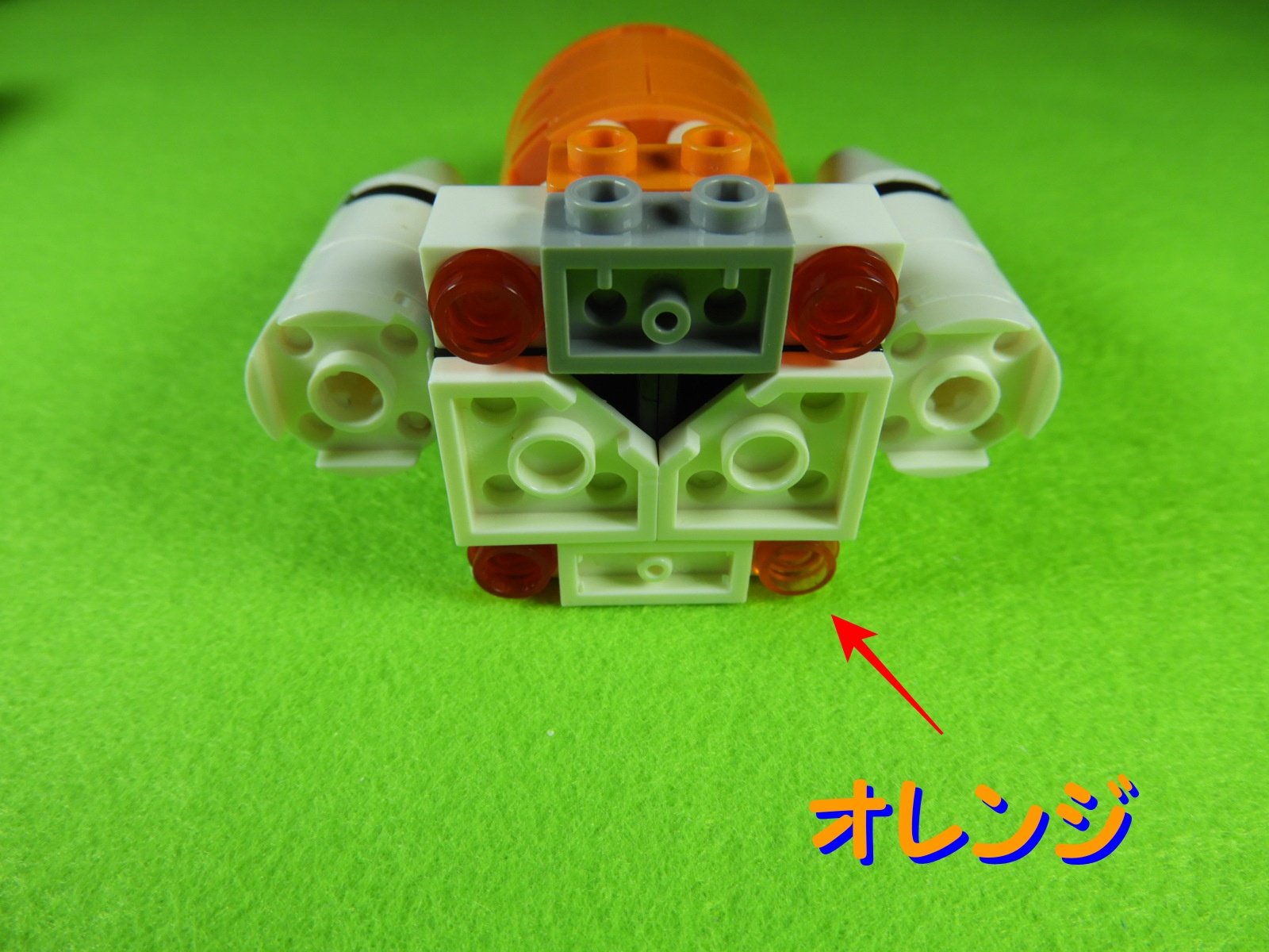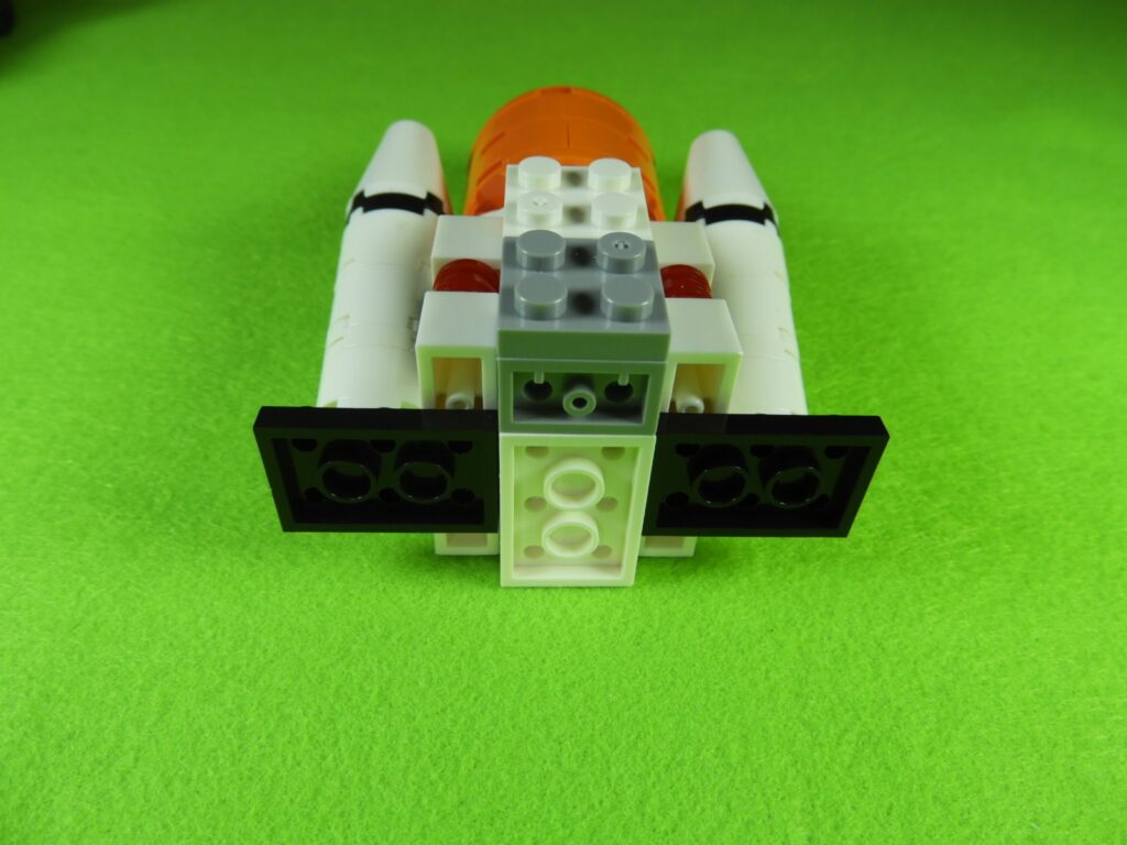 2.白丸ブロック2個はロケットブースターの下に、白長方形ブロック2個は黒ブロックの横に取り付けるとOKです。