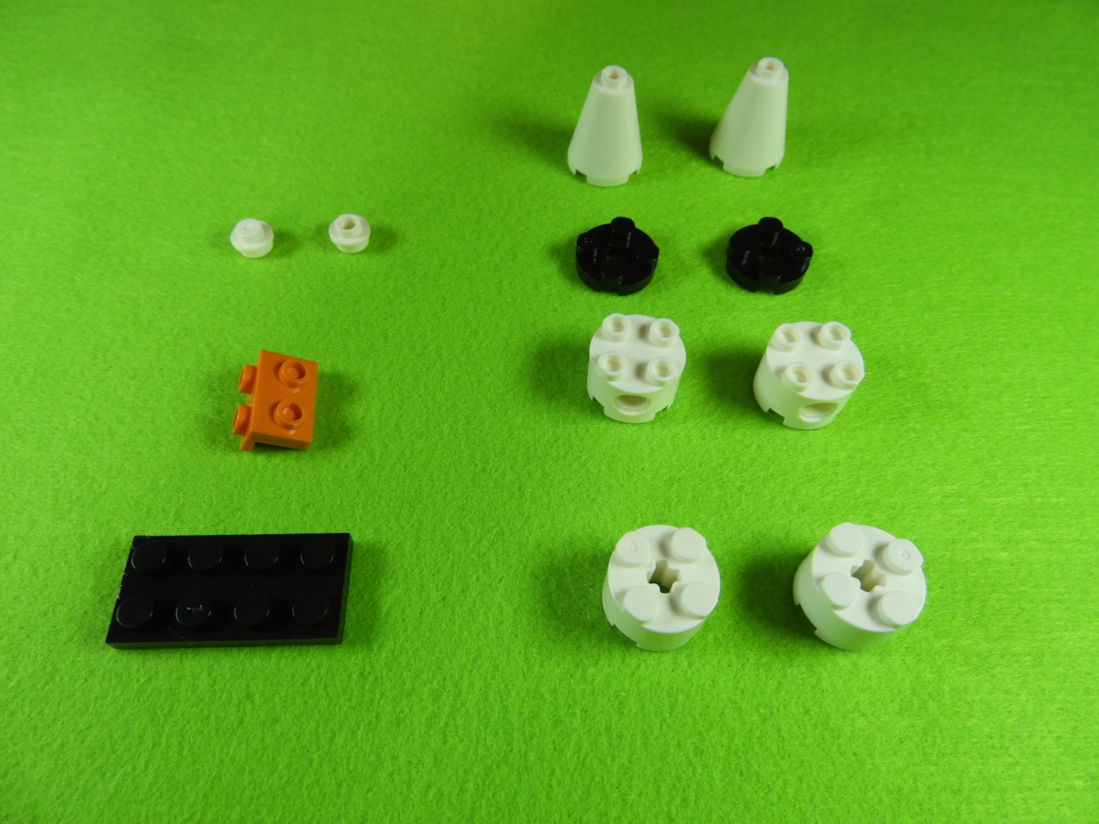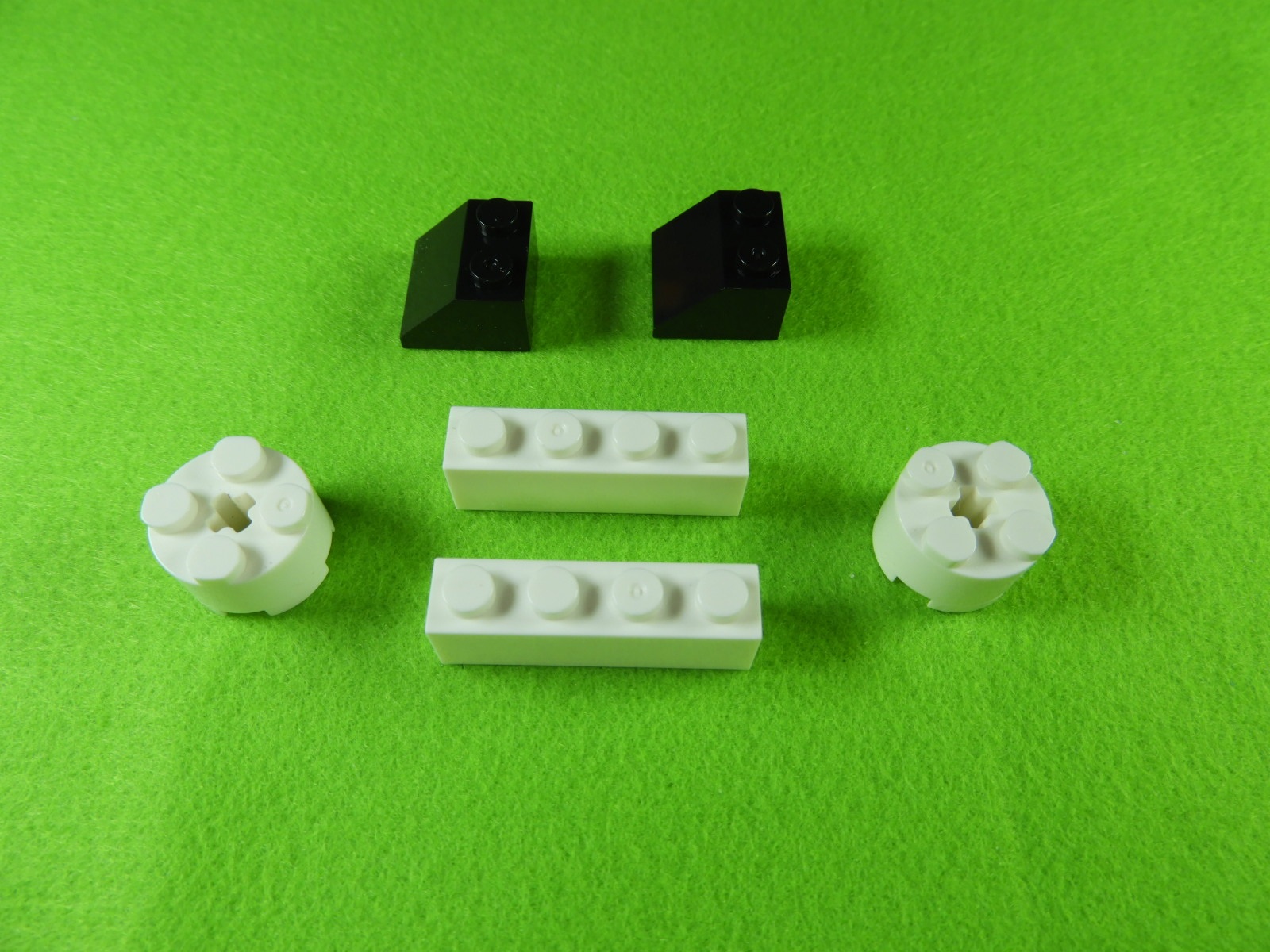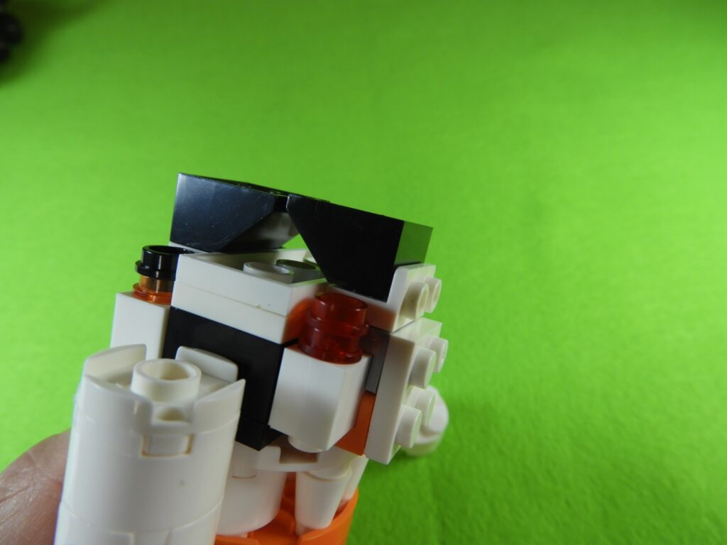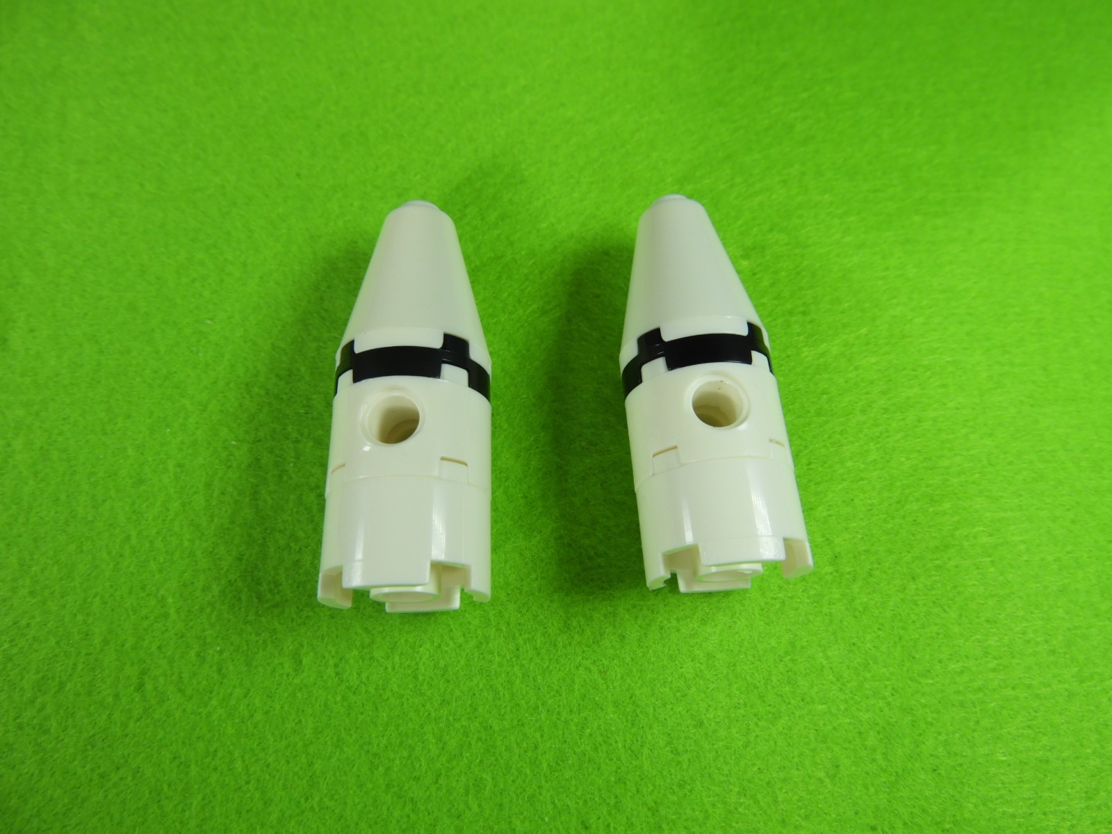 2.白丸ブロック2個はロケットブースターの下に、白長方形ブロック2個は黒ブロックの横に取り付けるとOKです。