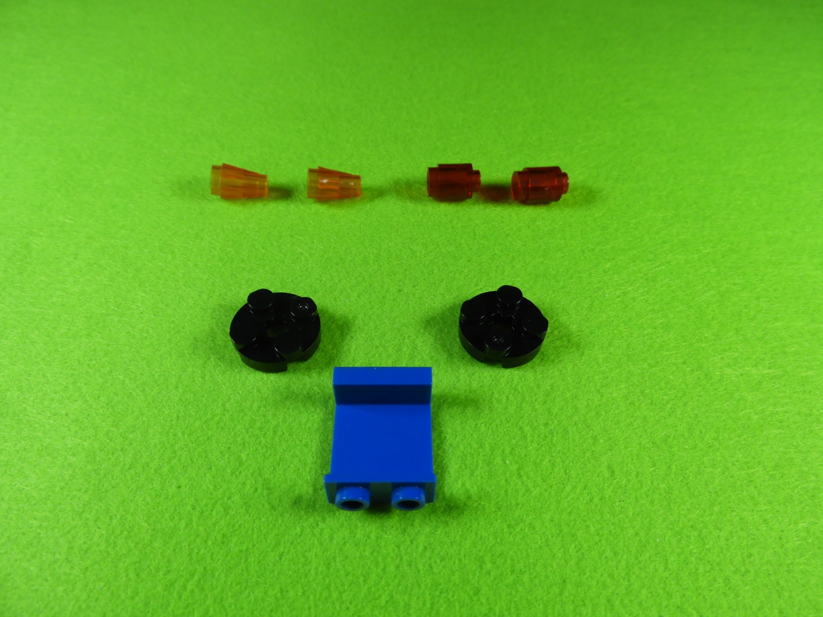 1.上記で用意した右側のブロックを組み立てて、小さいロケットブースターを2セット作ります。