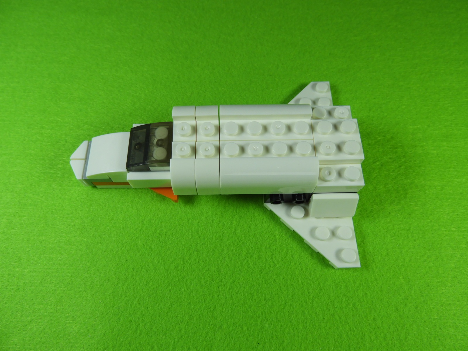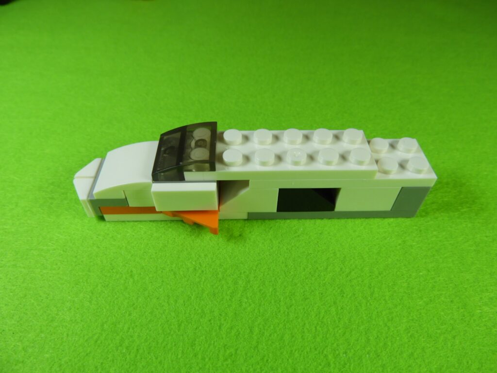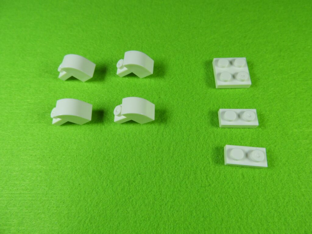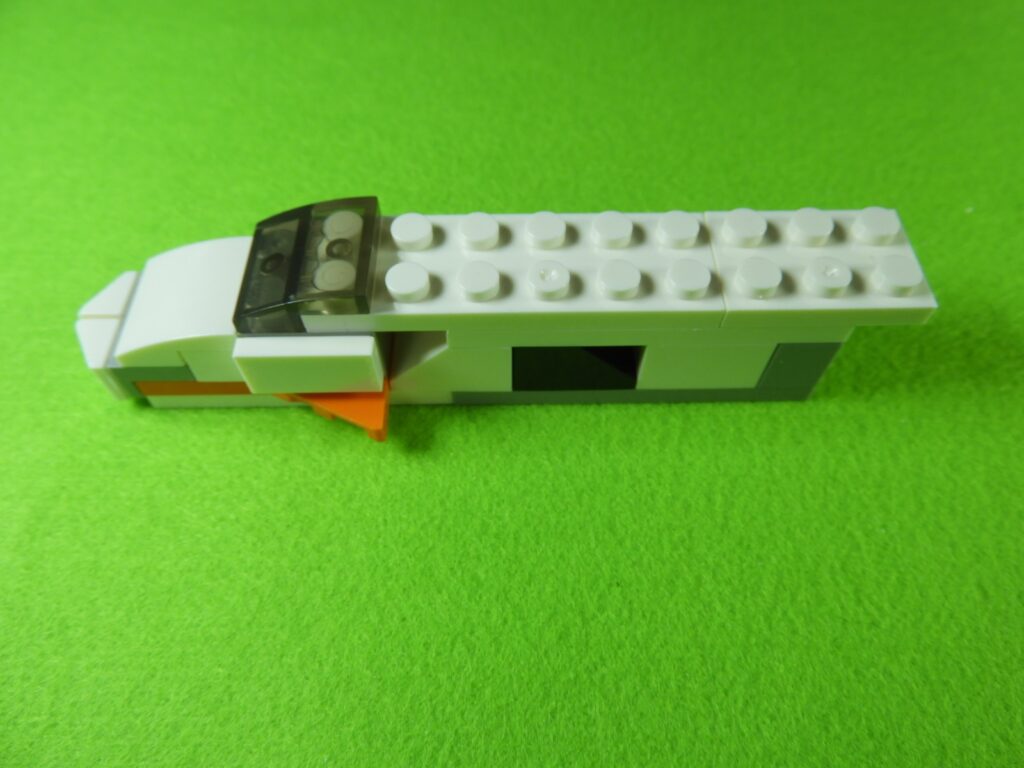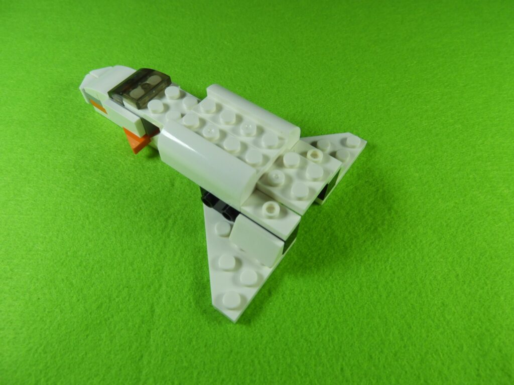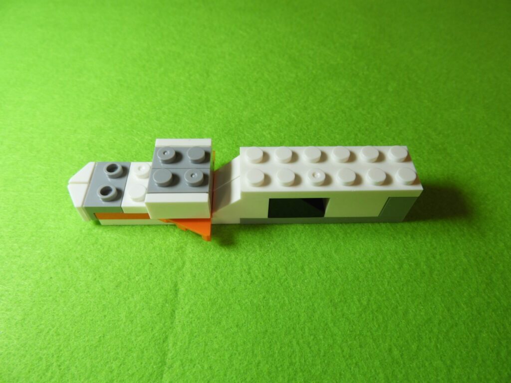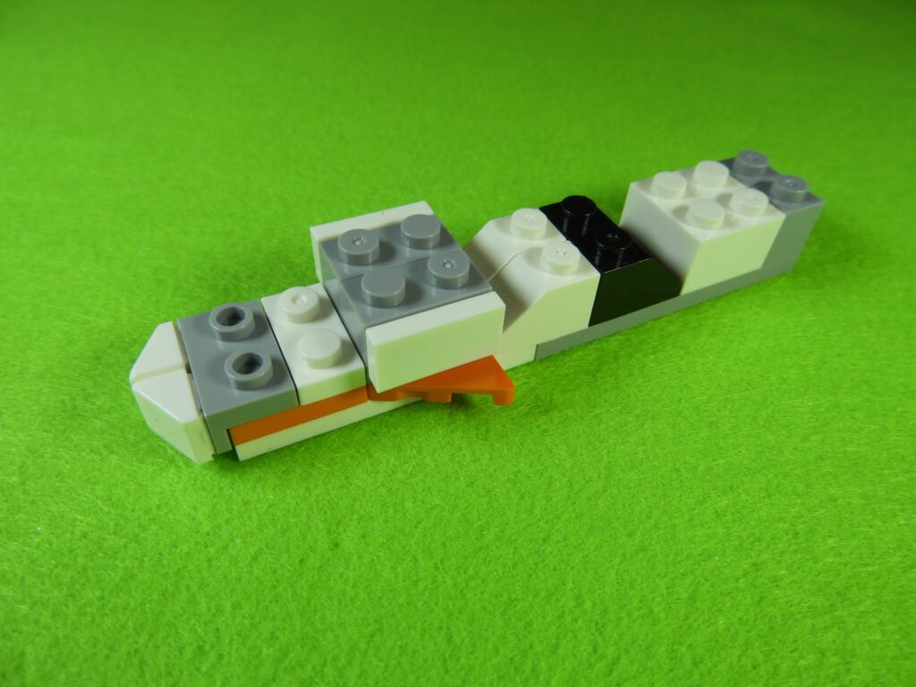 3.最後に、工程28番で組み立てた羽2枚を上記で取り付けた白ブロックの下に取り付け、白長方形ブロック2個を羽の上にのせると完成します。