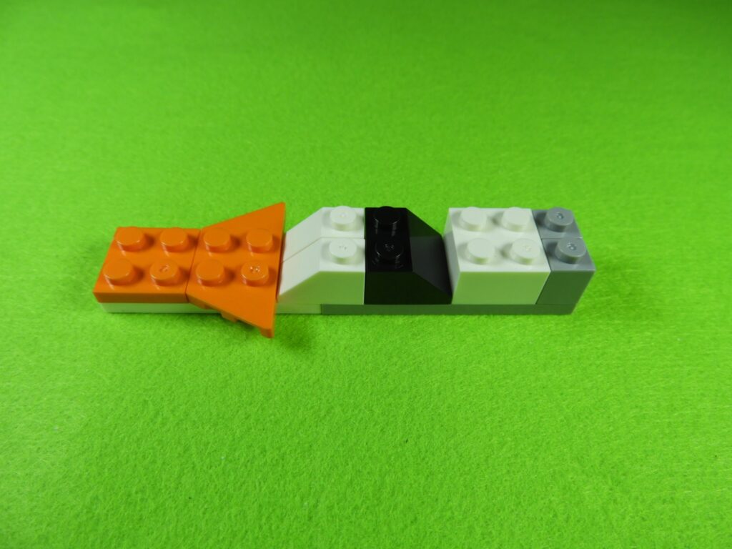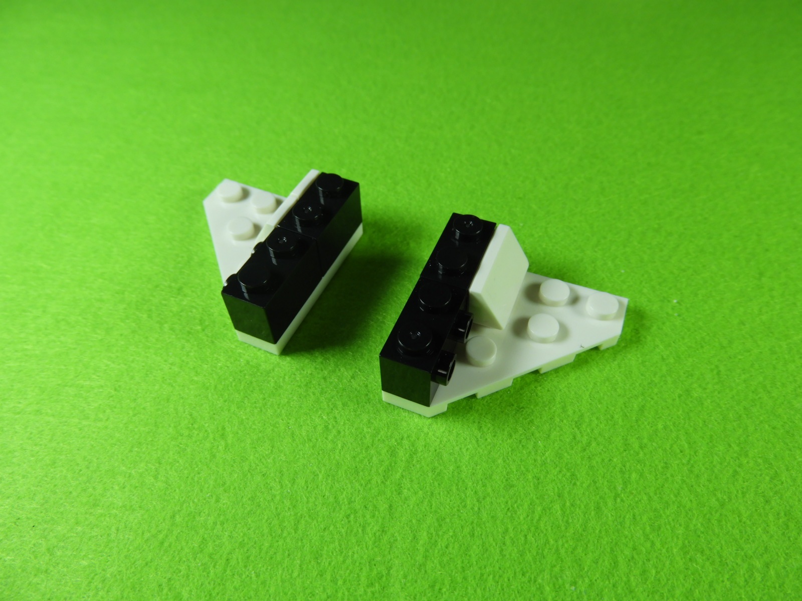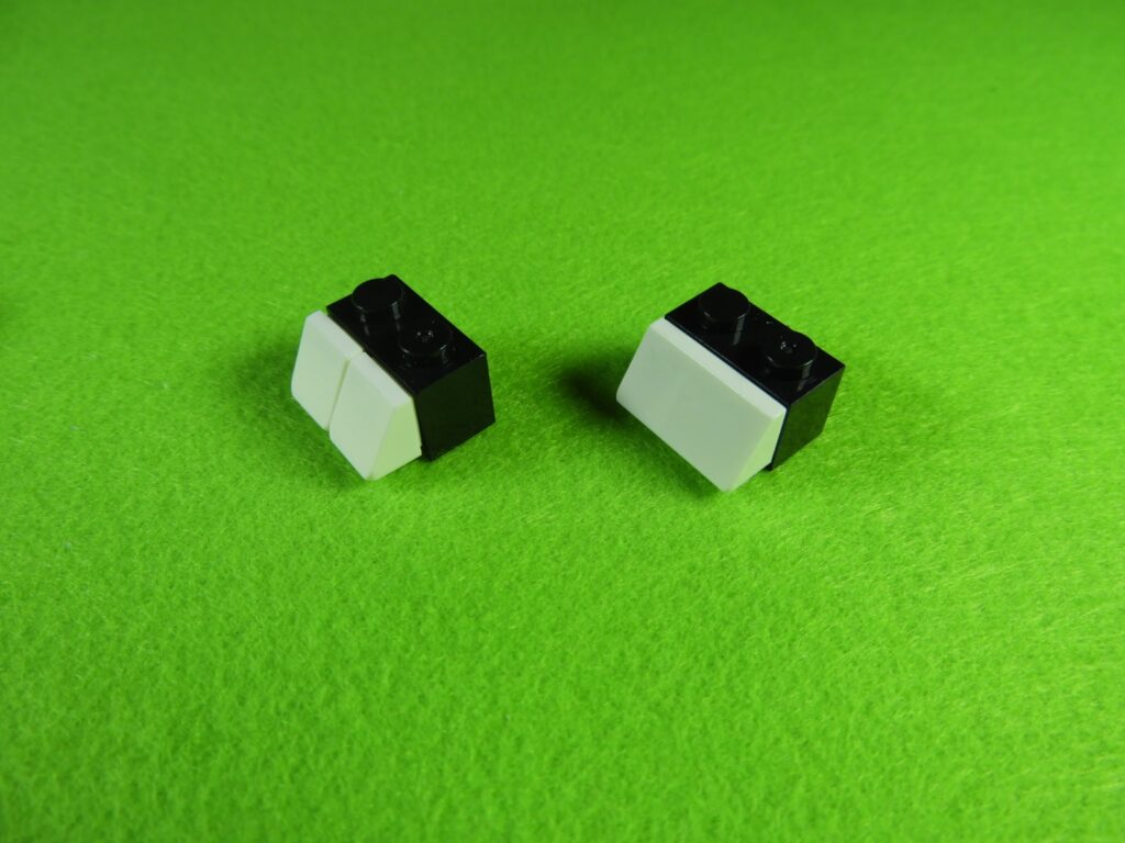 1.黒ブロック2個に、斜め面の白ブロック3個を取り付けます。