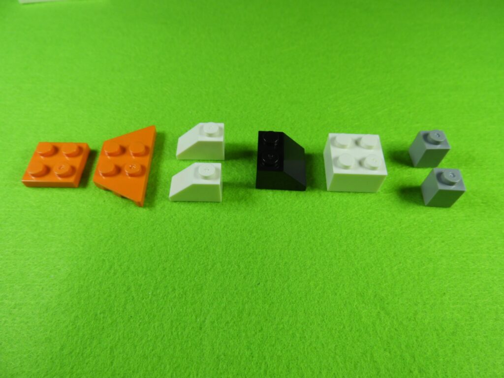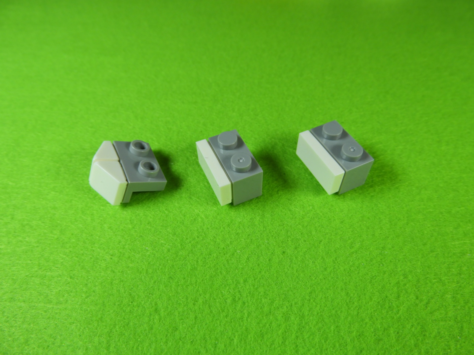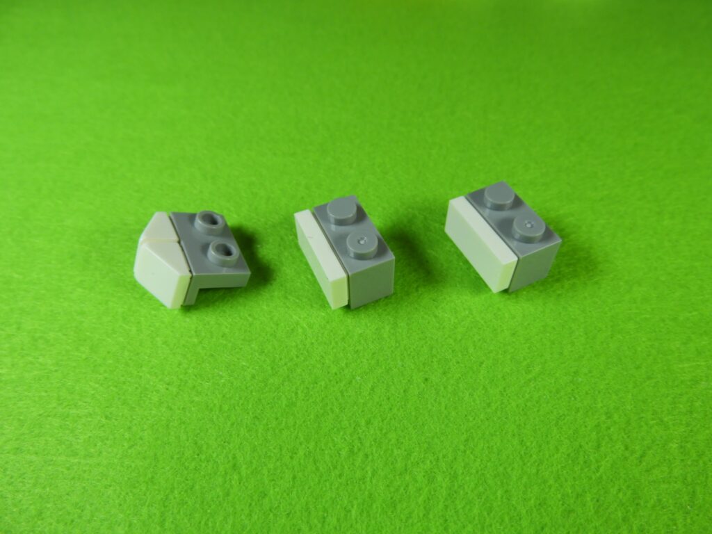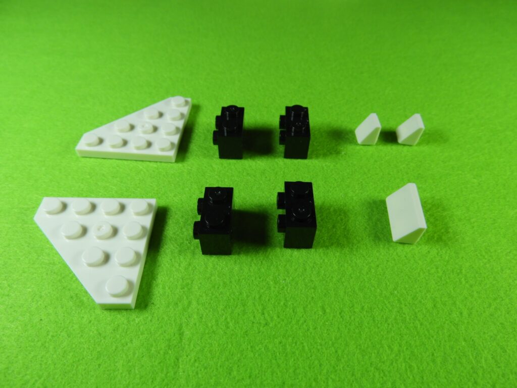 1.黒ブロック2個に、斜め面の白ブロック3個を取り付けます。