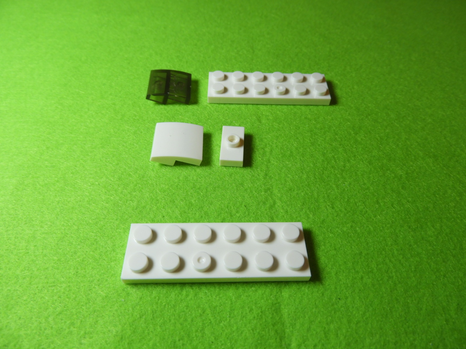 1.工程27番で組み立てたブロックの後方上に、長方形の白ブロックをのせます。