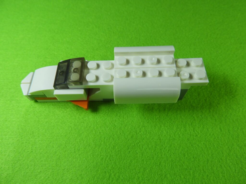 2.長い白ブロックを工程26番で組み立てたブロックの上にのせます。