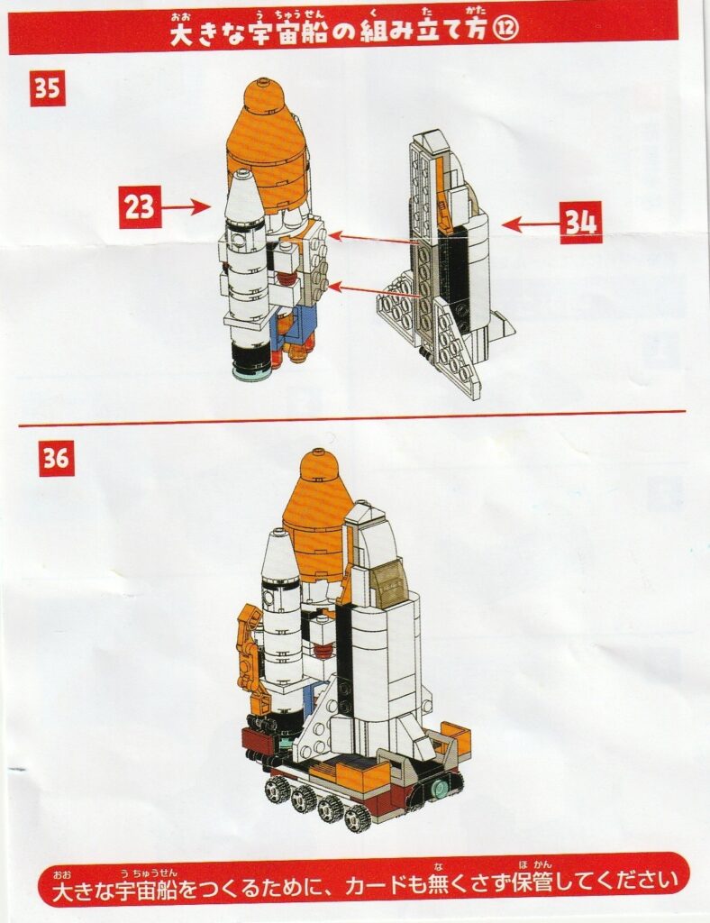工程36番は工程9番で組み立てた宇宙船の運搬車両に宇宙船をのせると大きな宇宙船が完成します。