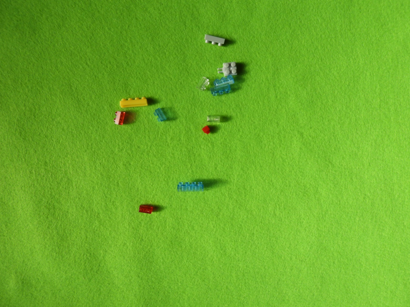 それでは工程2番で使用するブロックを並べます。1.2段目のブロックの上に、1段目のブロックをのせます。下記写真のようにブロックはバラけていても大丈夫です。