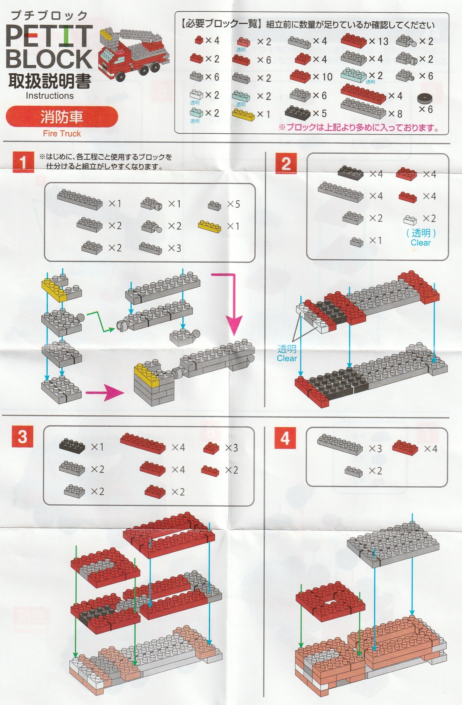 消防車の取扱説明書ものせておきましたので確認しながら作ってくださいね♪