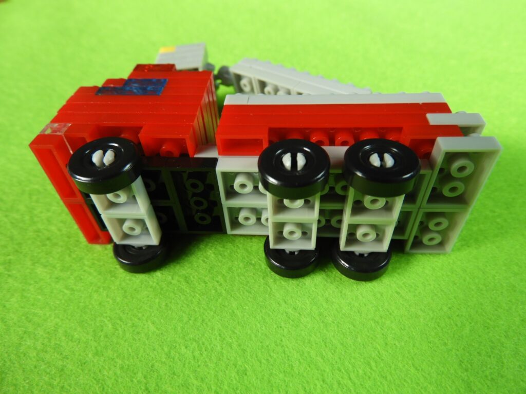 2.組み立てたタイヤを消防車の下に取り付けます。これで消防車は完成しました。