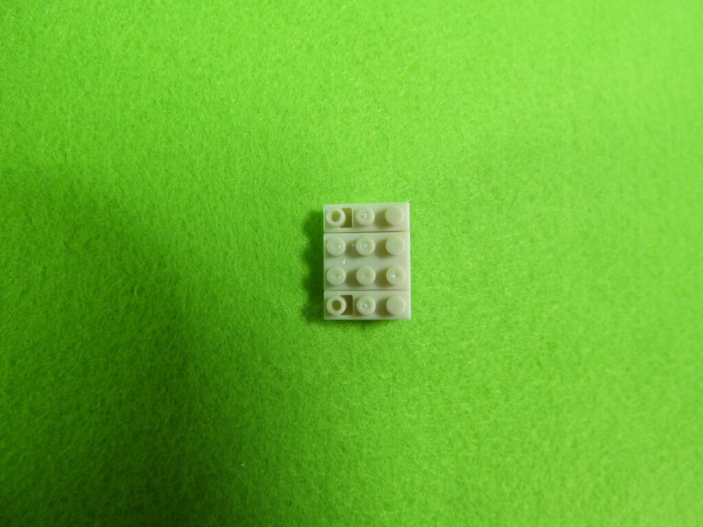 4.上記で組み立てたブロック下に、5段目の白ブロック4個を取り付けます。これで工程2番の1パーツ目ができました。