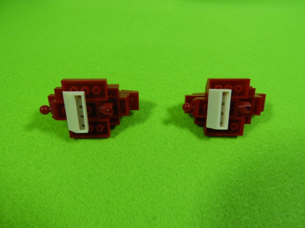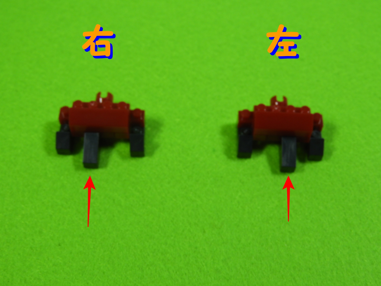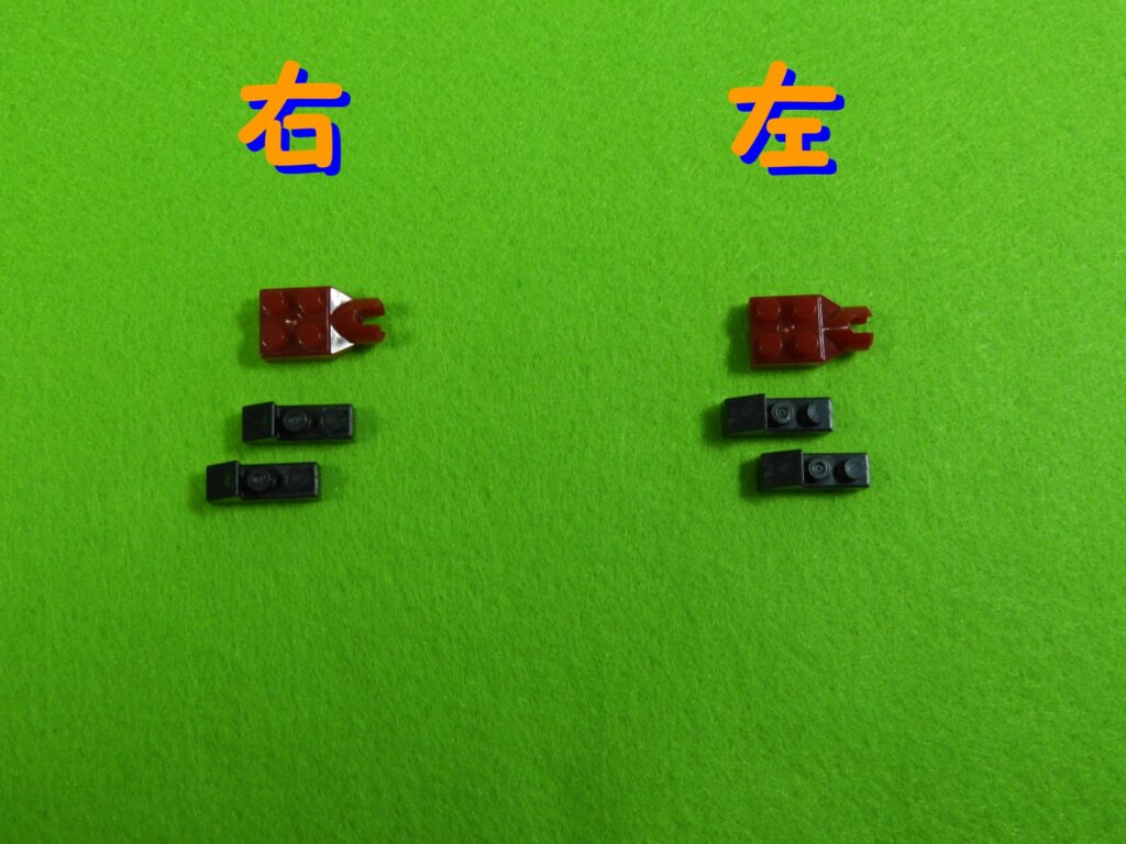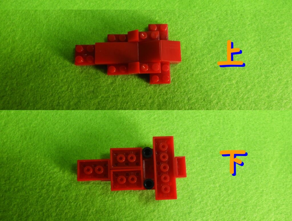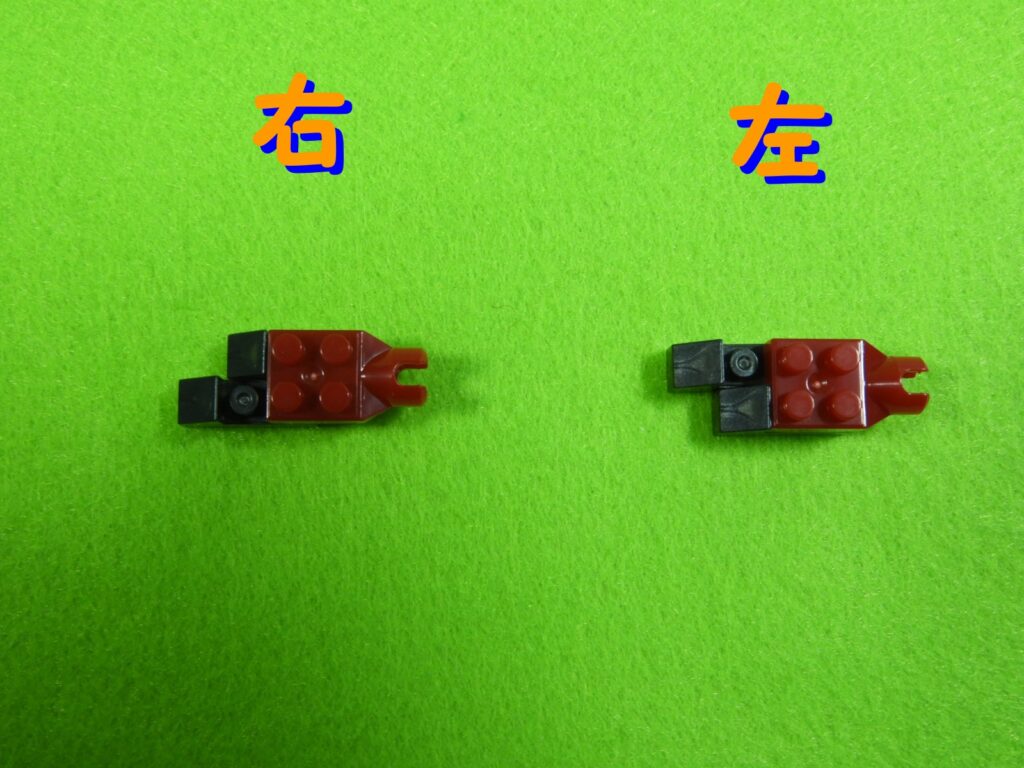赤ブロックの下に、黒ブロック2個を取り付けるとこんな感じになります。左右で黒ブロックの位置が違うのでよく確認してくださいね。