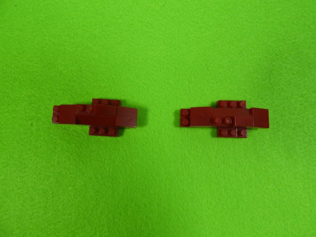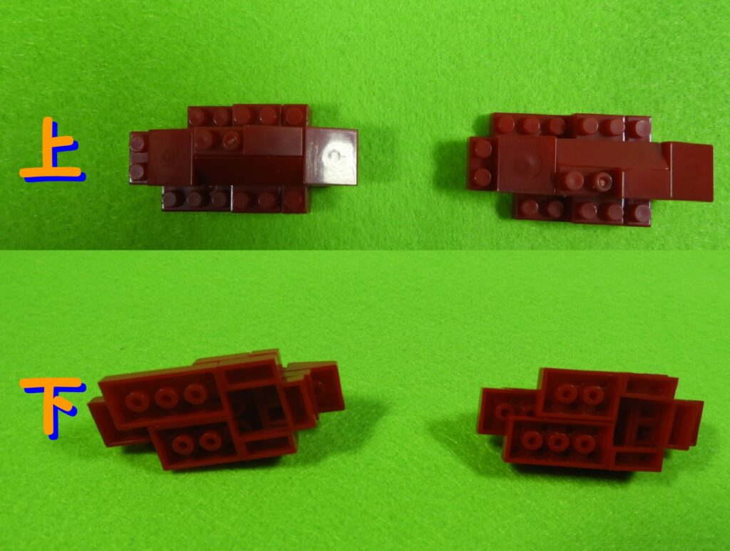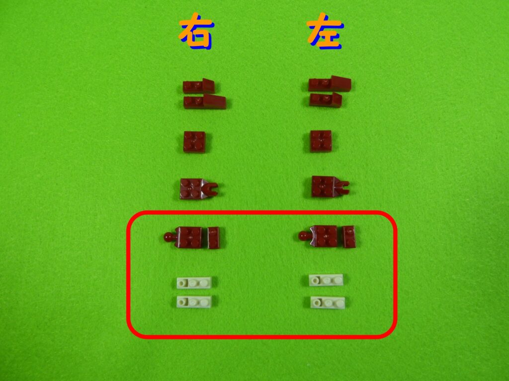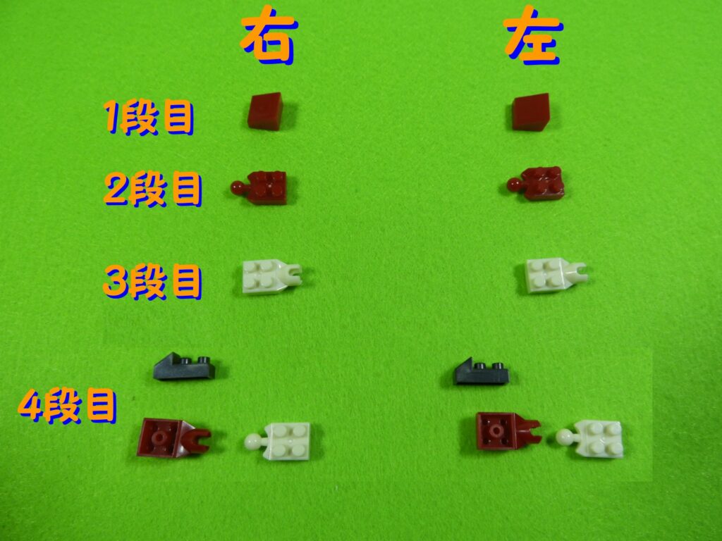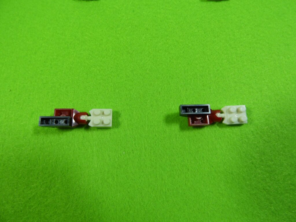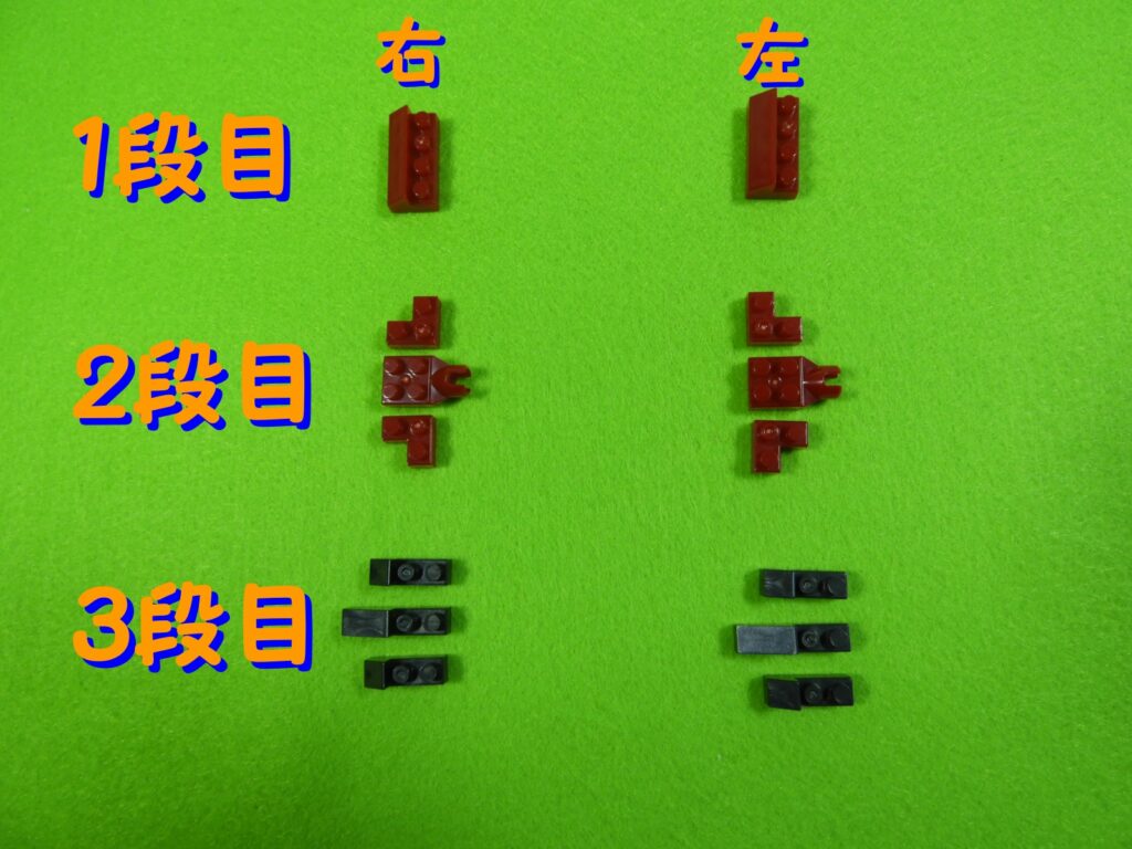 赤ブロックの下に、黒ブロック2個を取り付けるとこんな感じになります。左右で黒ブロックの位置が違うのでよく確認してくださいね。