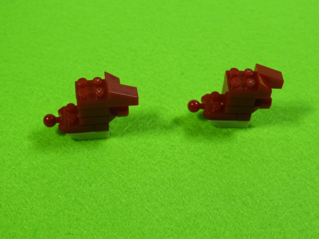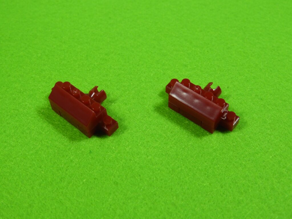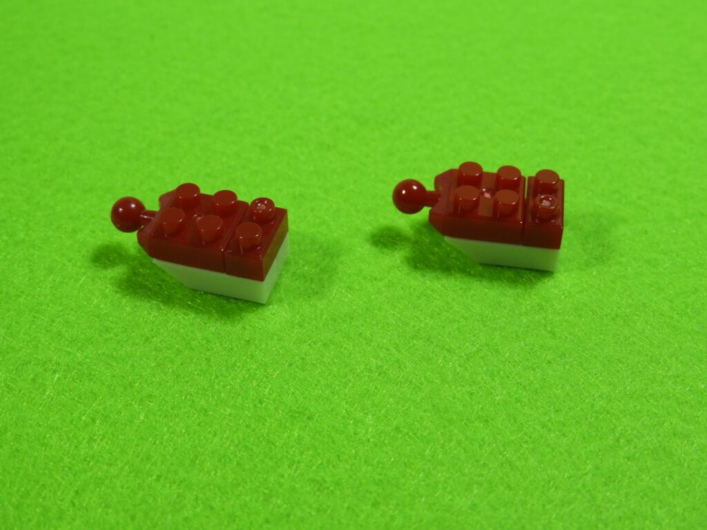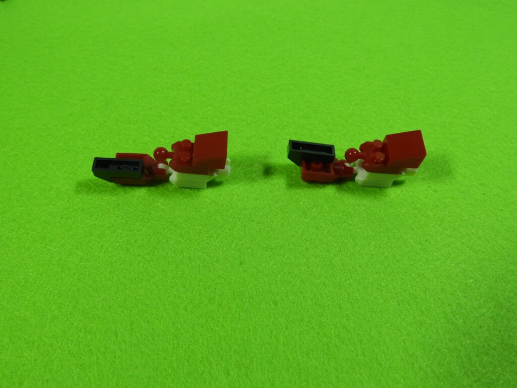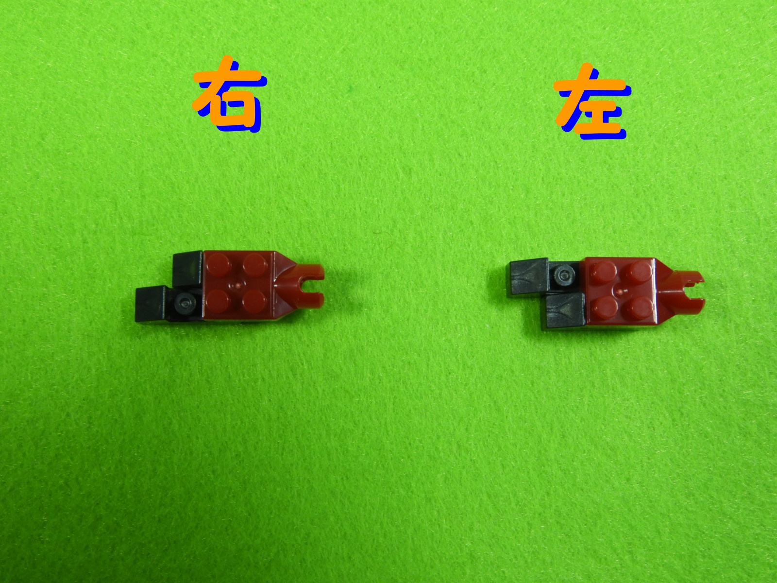 赤ブロックの下に、黒ブロック2個を取り付けるとこんな感じになります。左右で黒ブロックの位置が違うのでよく確認してくださいね。