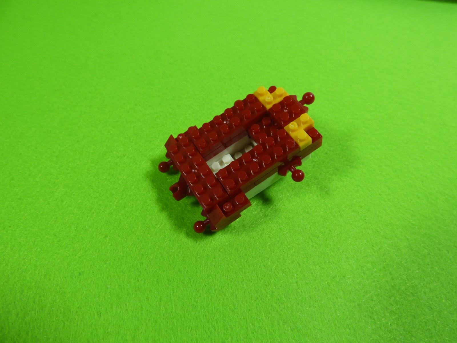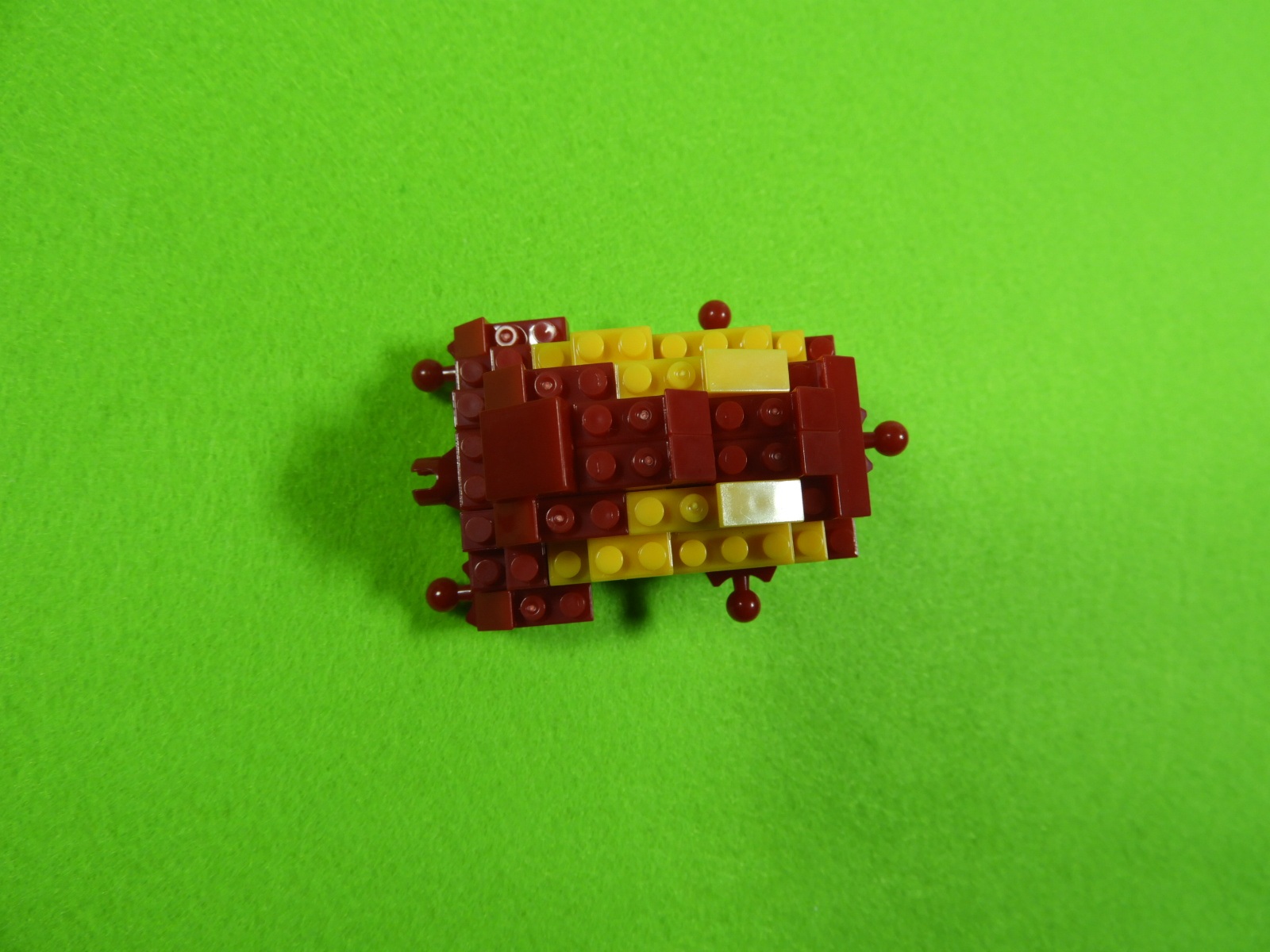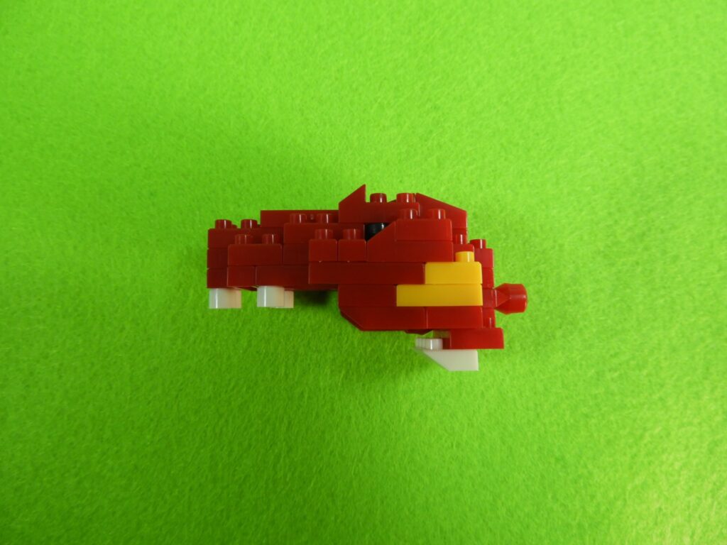 3.上記で組み立てたブロックの下に、3段目の赤ブロック1個を取り付けます。ここでブロックが1つにまとまりました。
