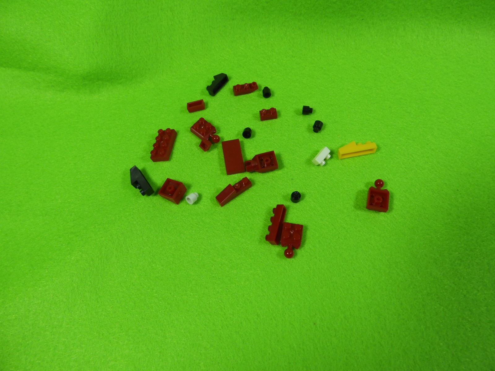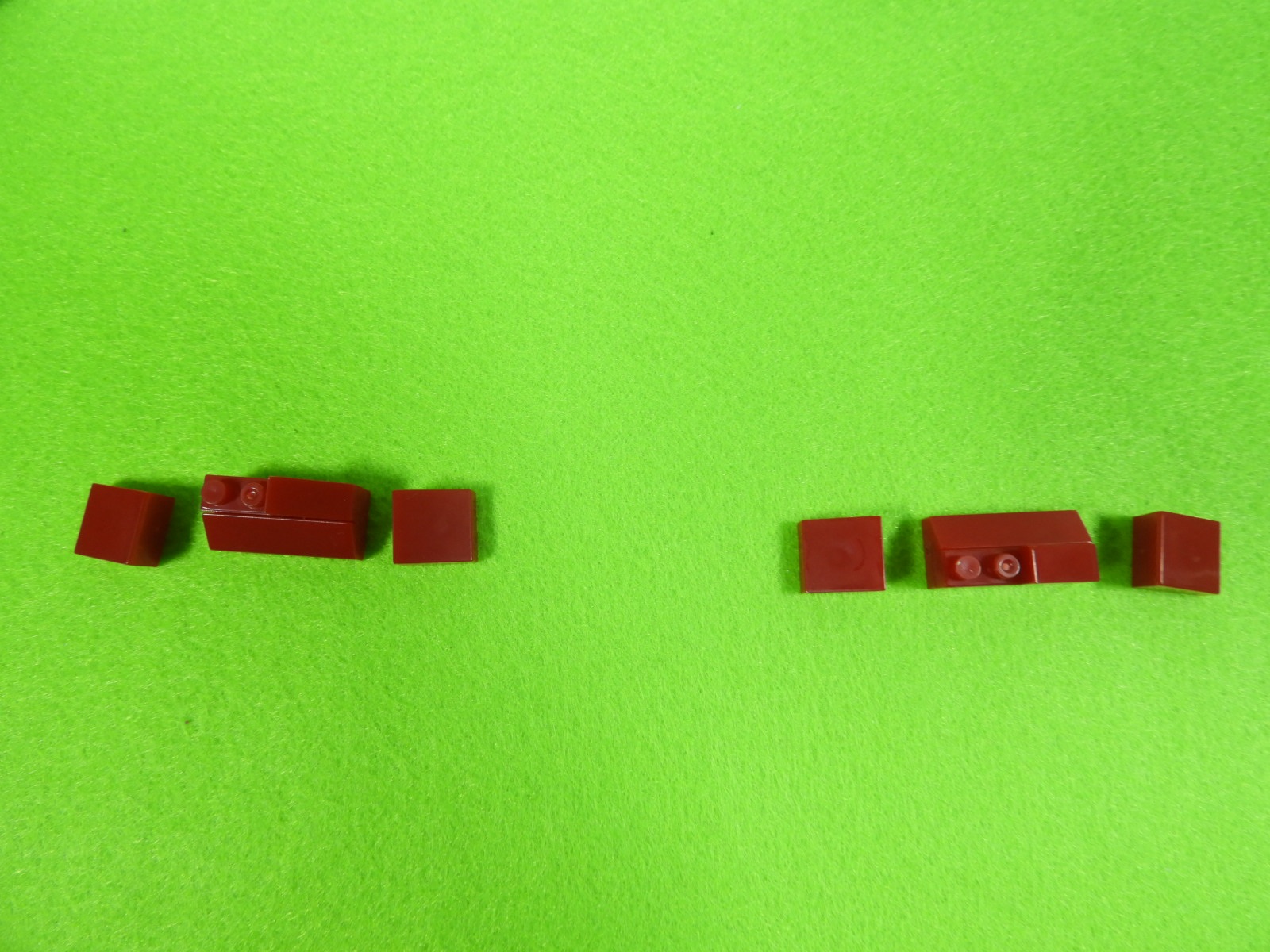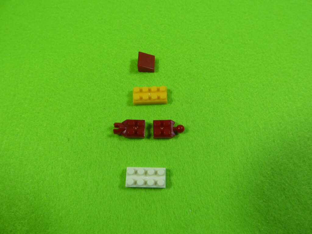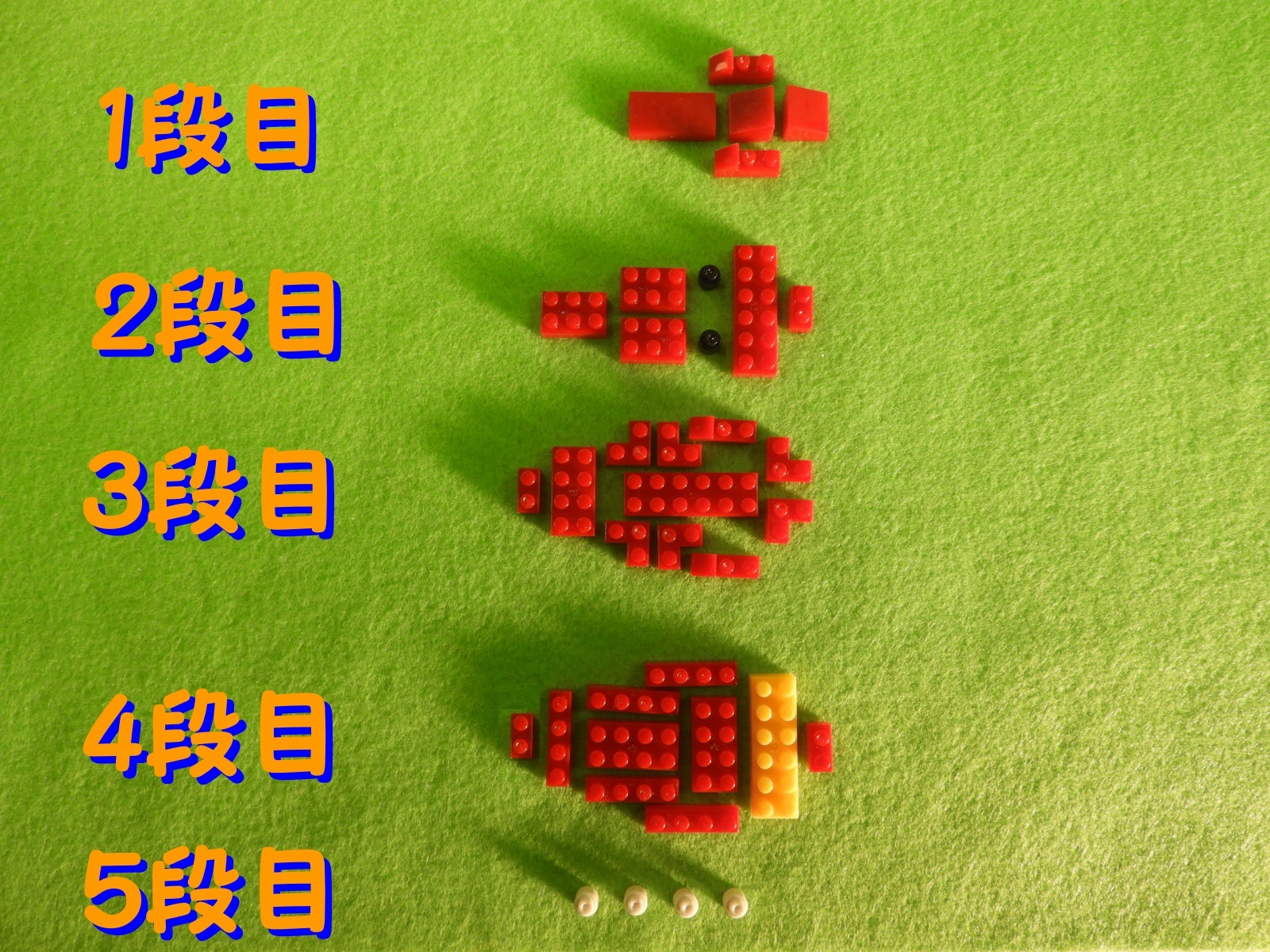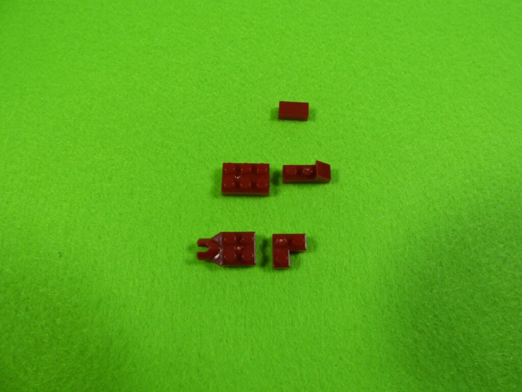 それでは工程1番で使用するブロックを並べます。赤いブロック3個は、少し黒みがかった赤になります。