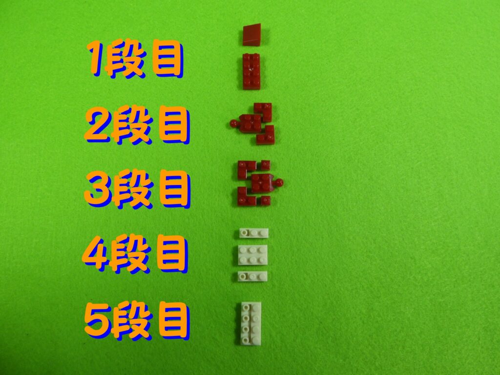 2.3段目のブロックの上に、上記で組み立てたブロックをのせます。