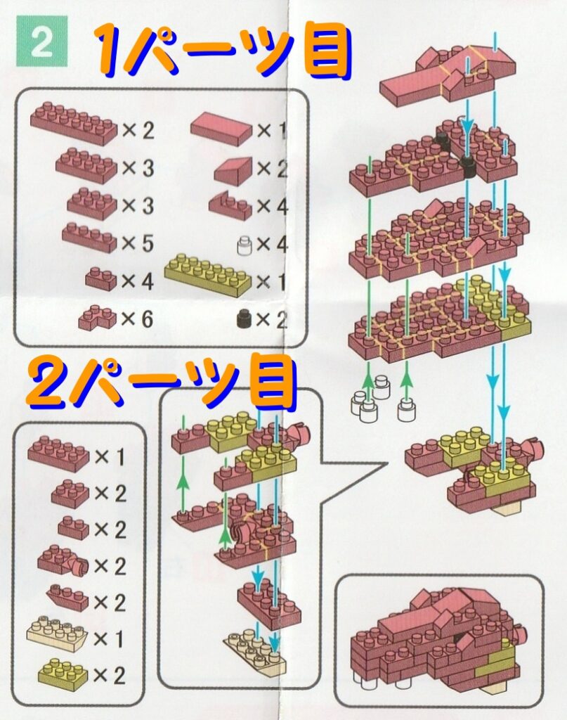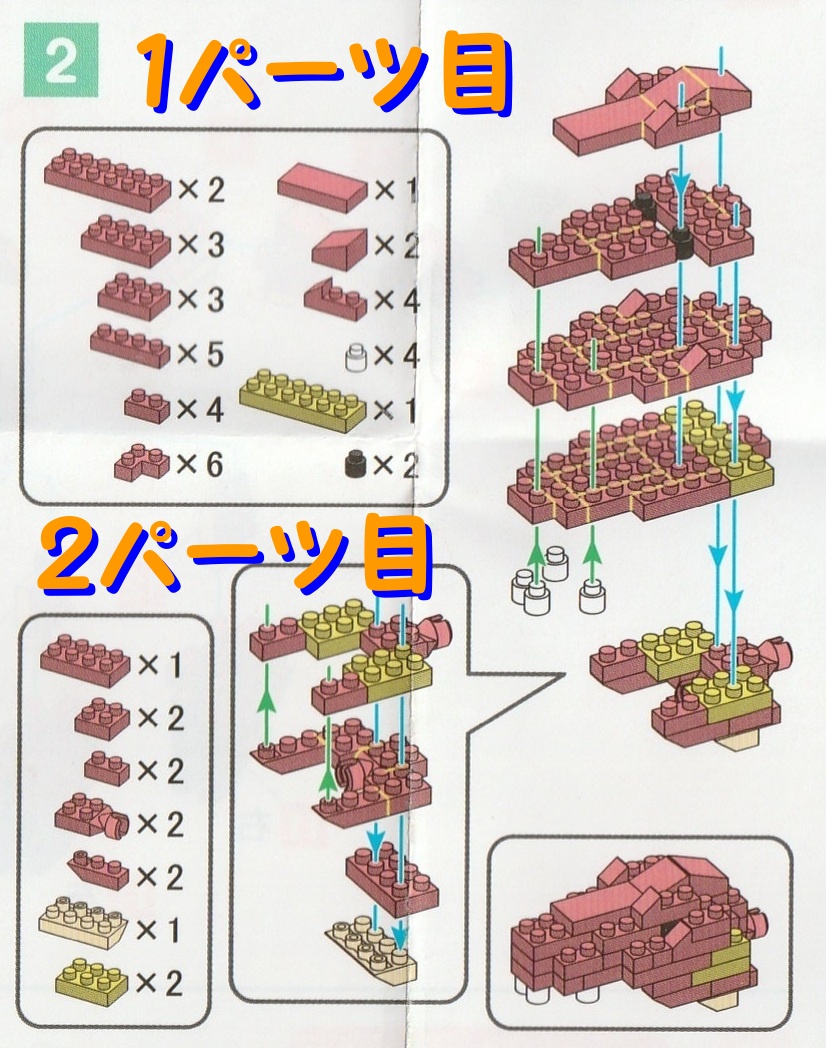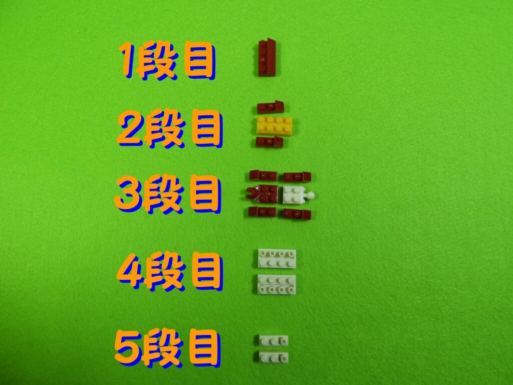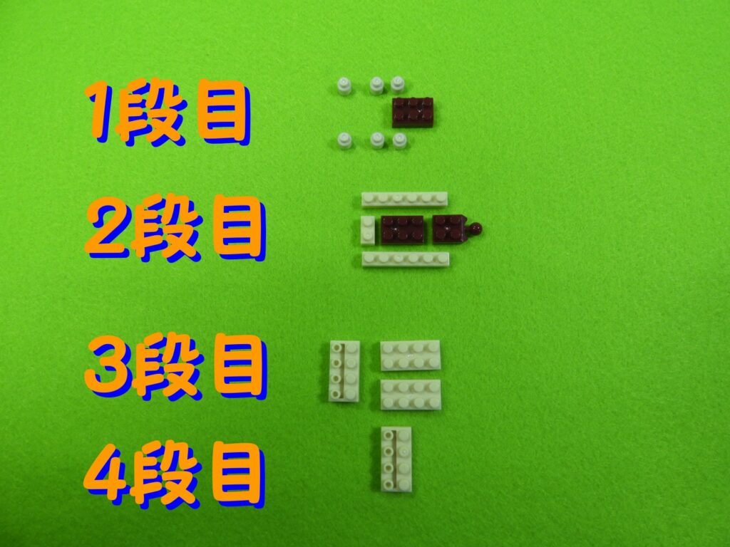 1.それでは工2番の2パーツ目で使用するブロックを並べます。