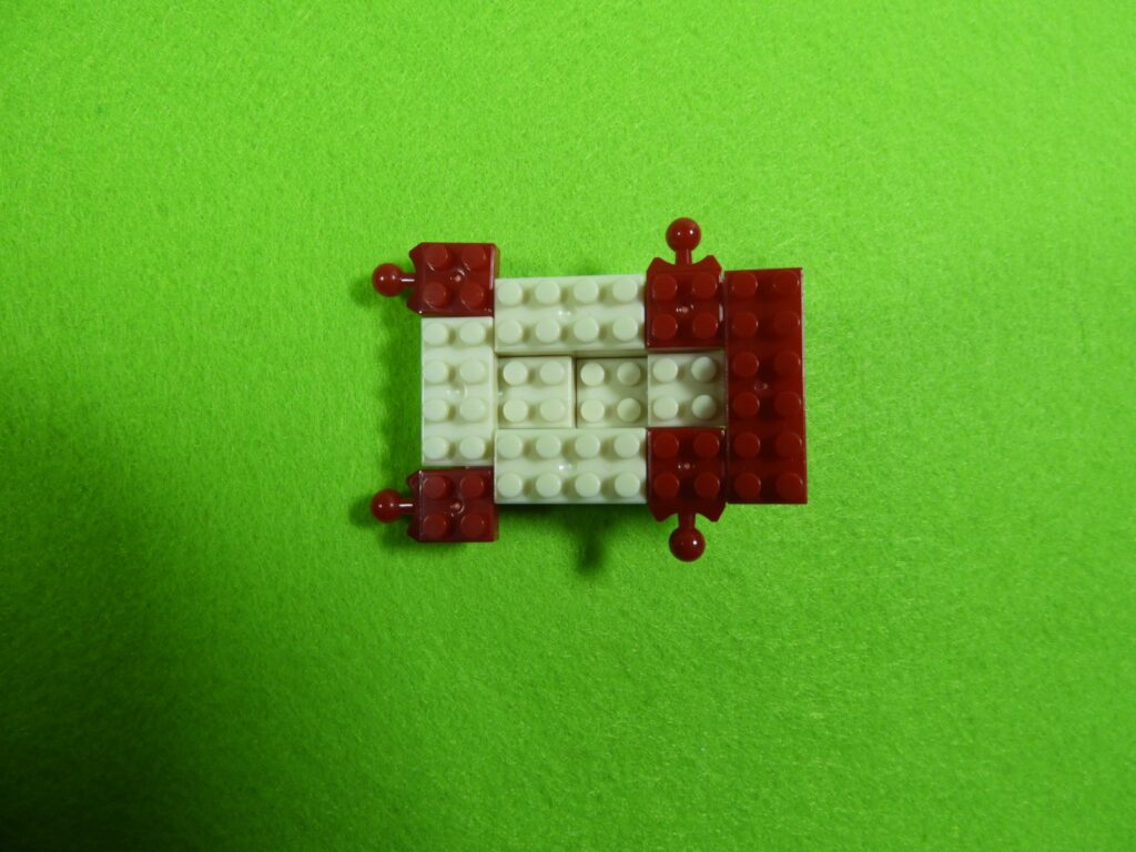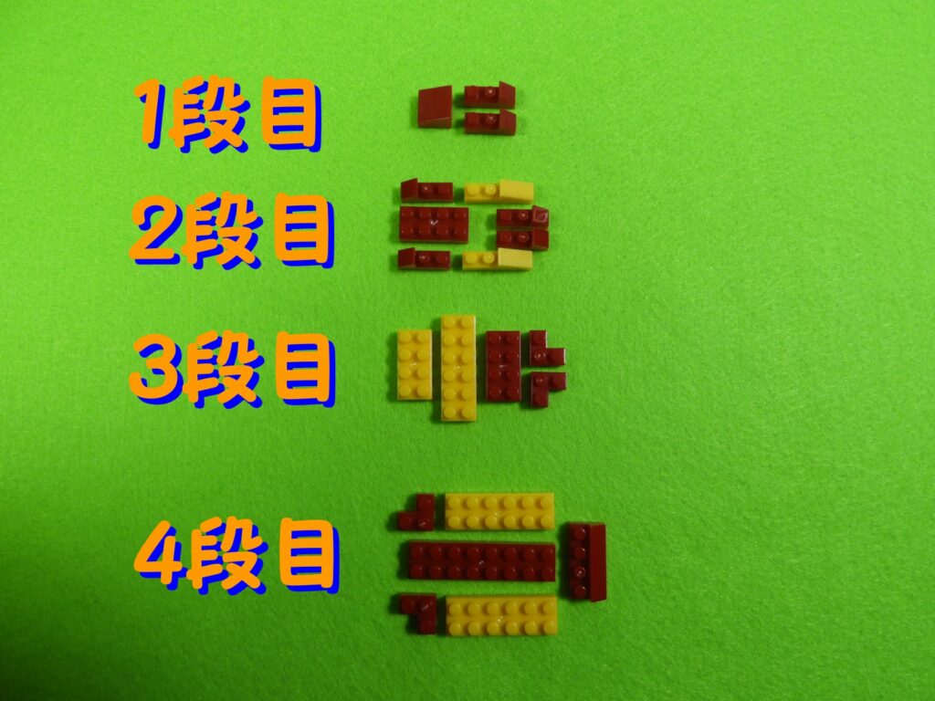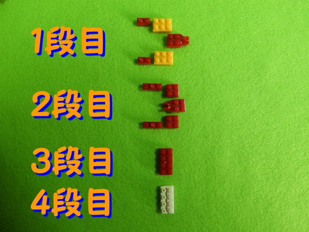 4.最後に上記で組み立てたブロックの上に、1段目のブロック2個をのせると工程4番は完成します。