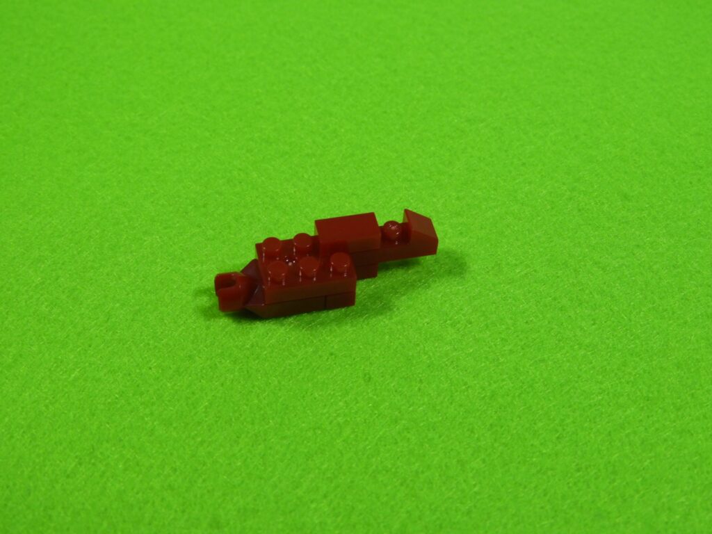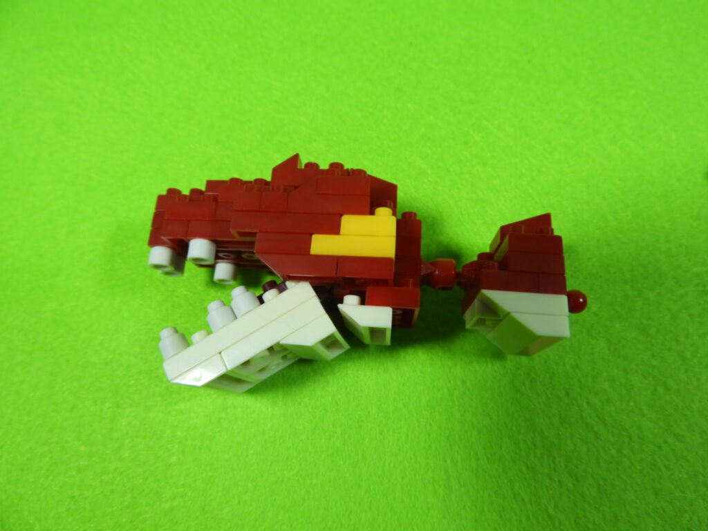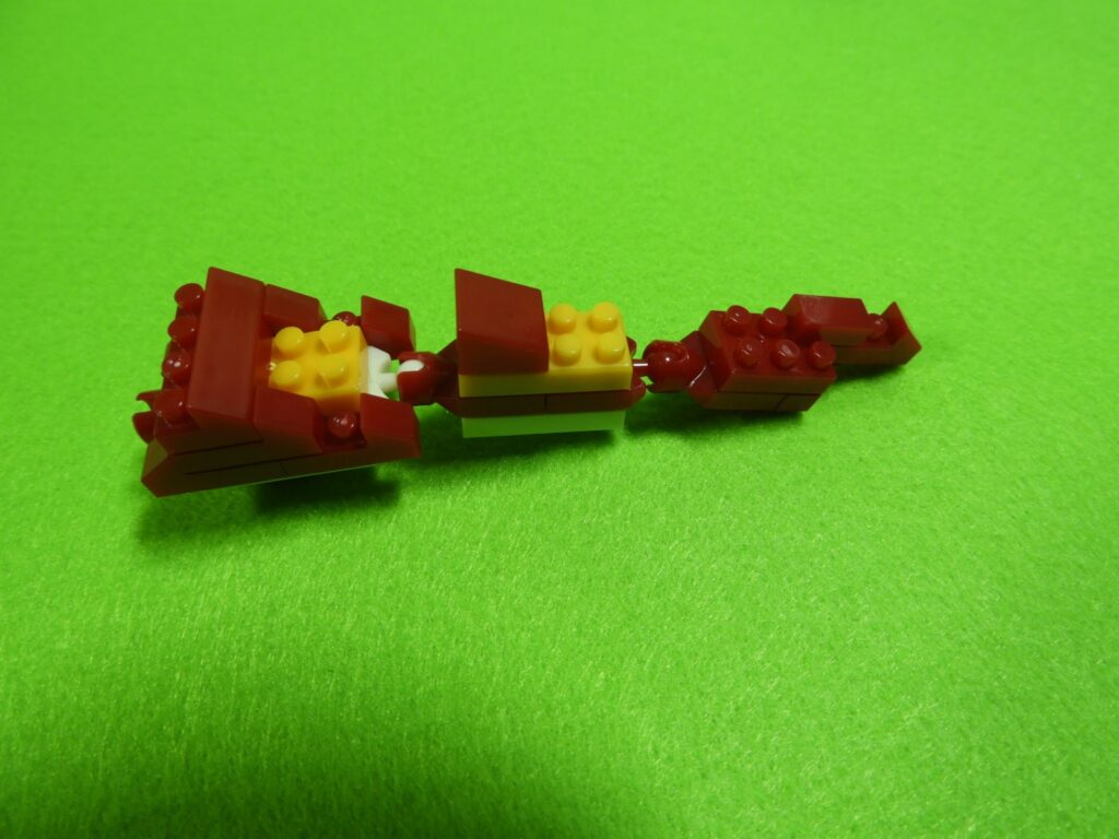 工程16番はすべてのブロックを1つにします。先に頭としっぽを接続してから胴体にとりつけるとやりやすいでしょう。