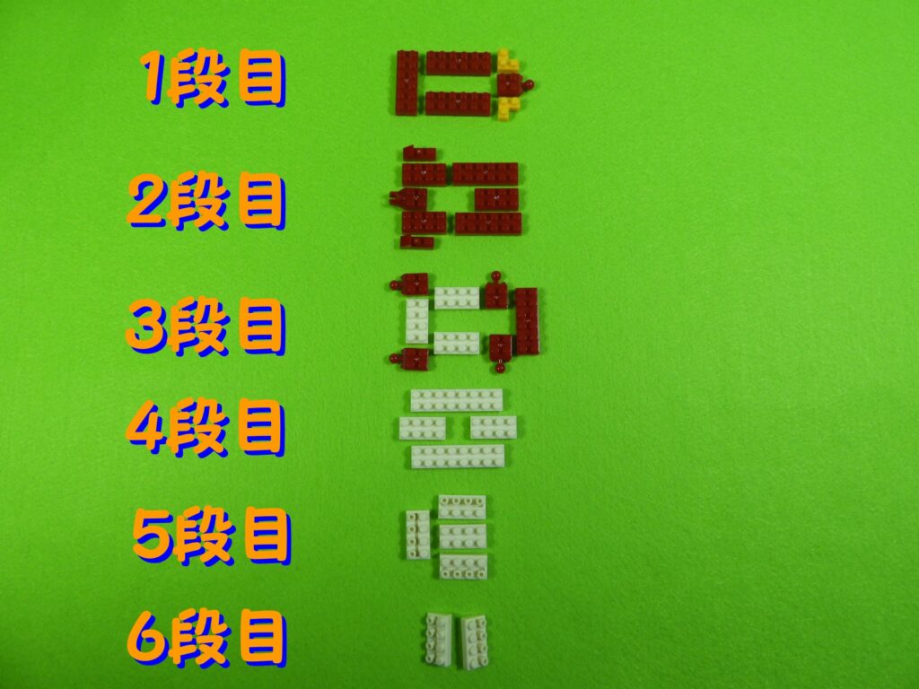 5.上記で組み立てたブロックの上に、1段目のブロックをのせると工程6番は完成します。