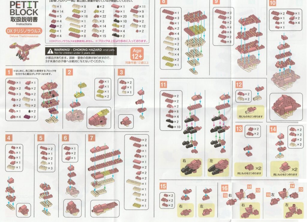 DXテリジノサウルスの説明書はこちら、取扱説明書 工程1番~工16番まで