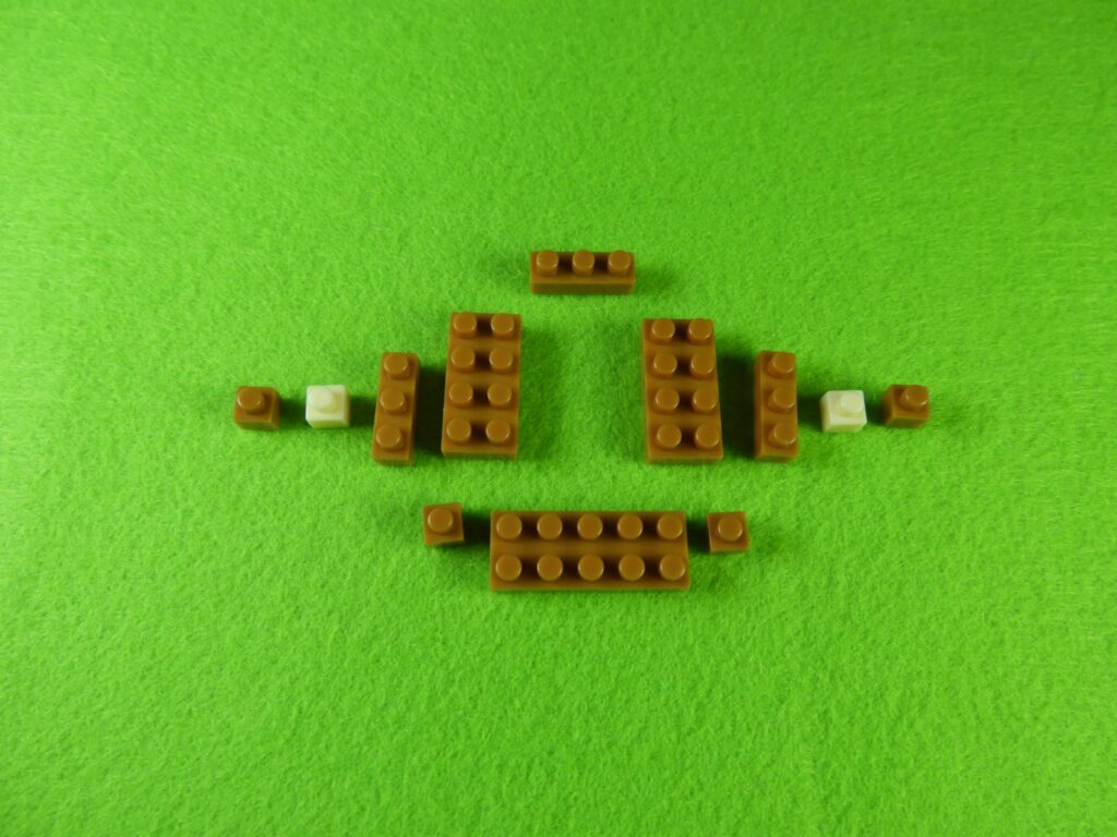 それでは工程2番で使用するブロックを並べます。工程2番もキツネの胴体になります。最初に下記ブロック6個を用意します。
