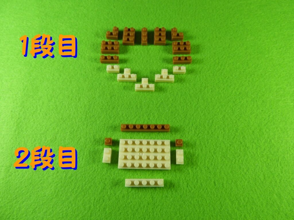 2段目のブロックの上に、1段目のブロックをのせると工程1番は完成です。