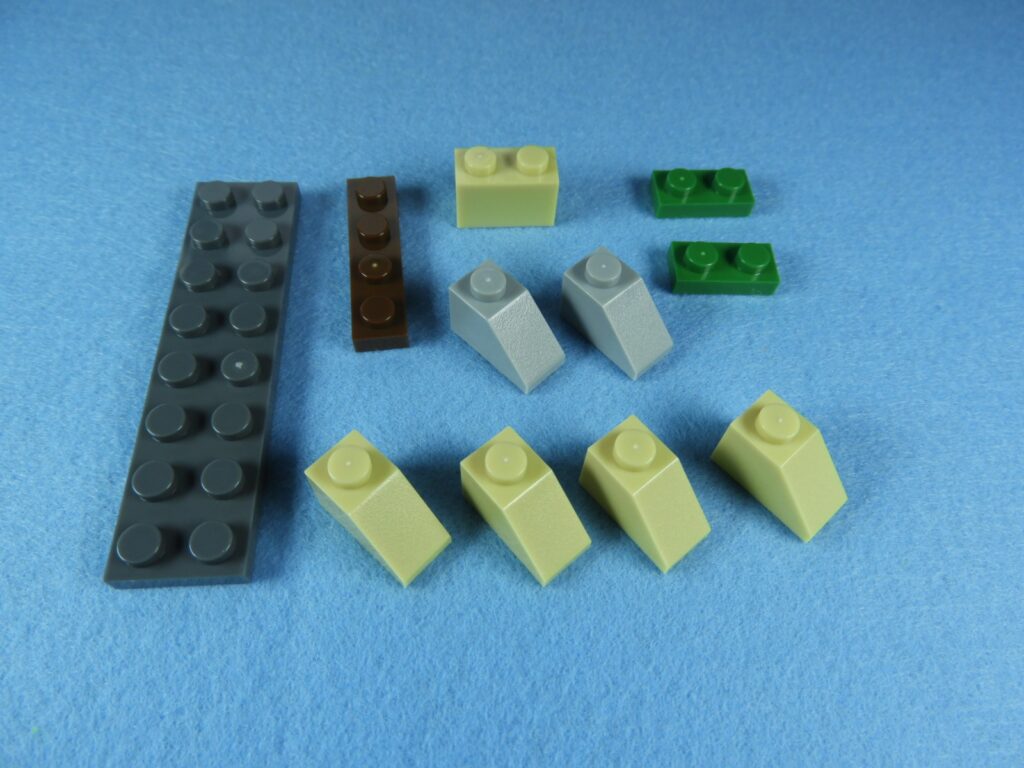 それでは工程14番で使用するブロックを並べます。工程14番は屋根の上の看板になります。
