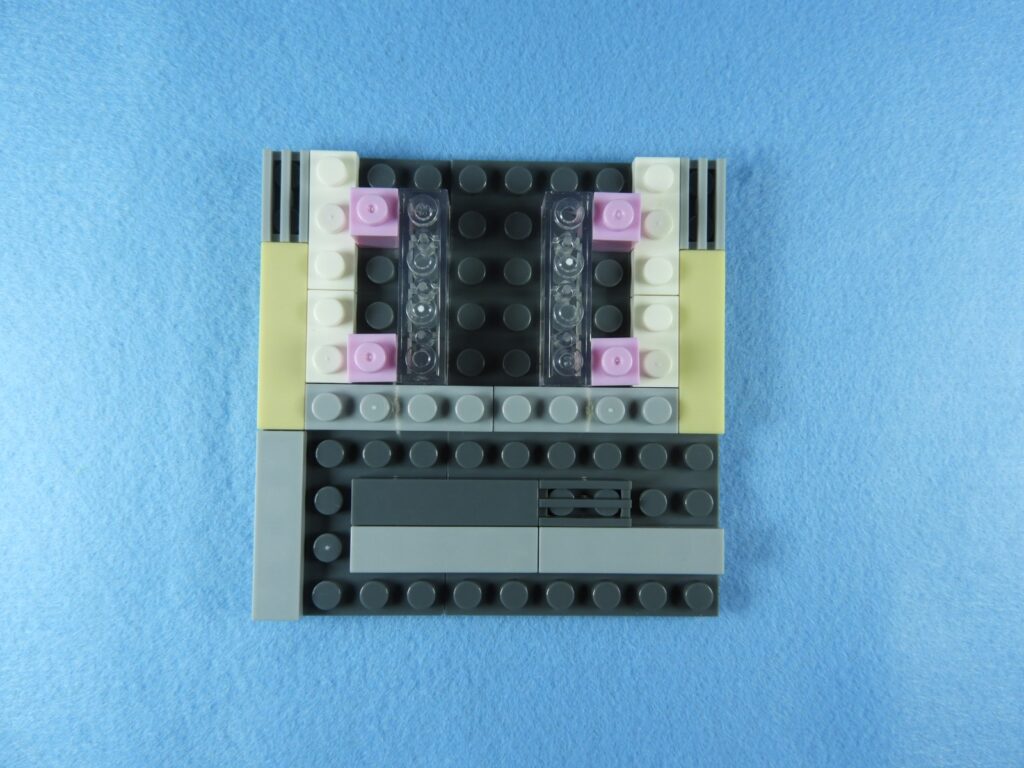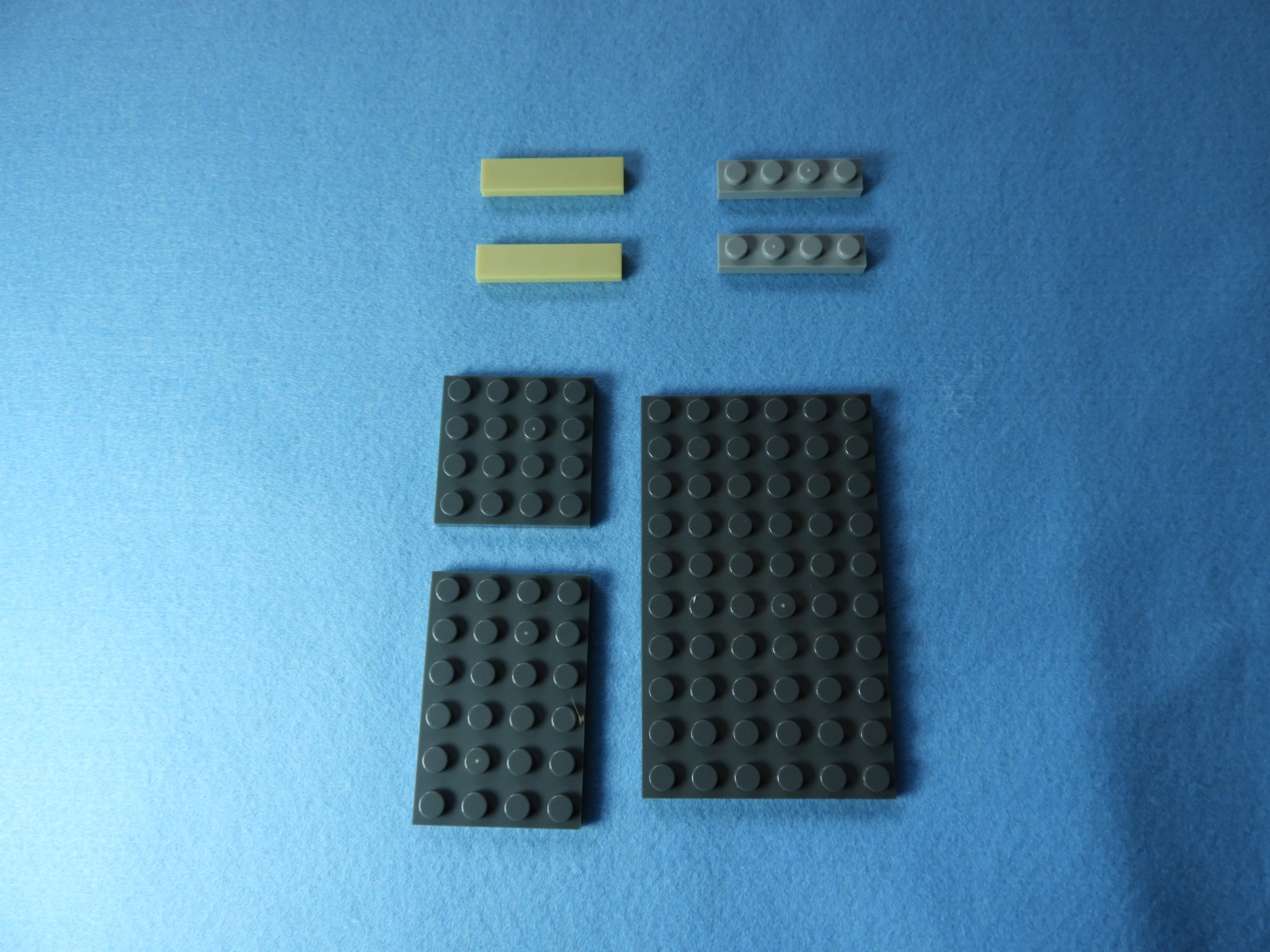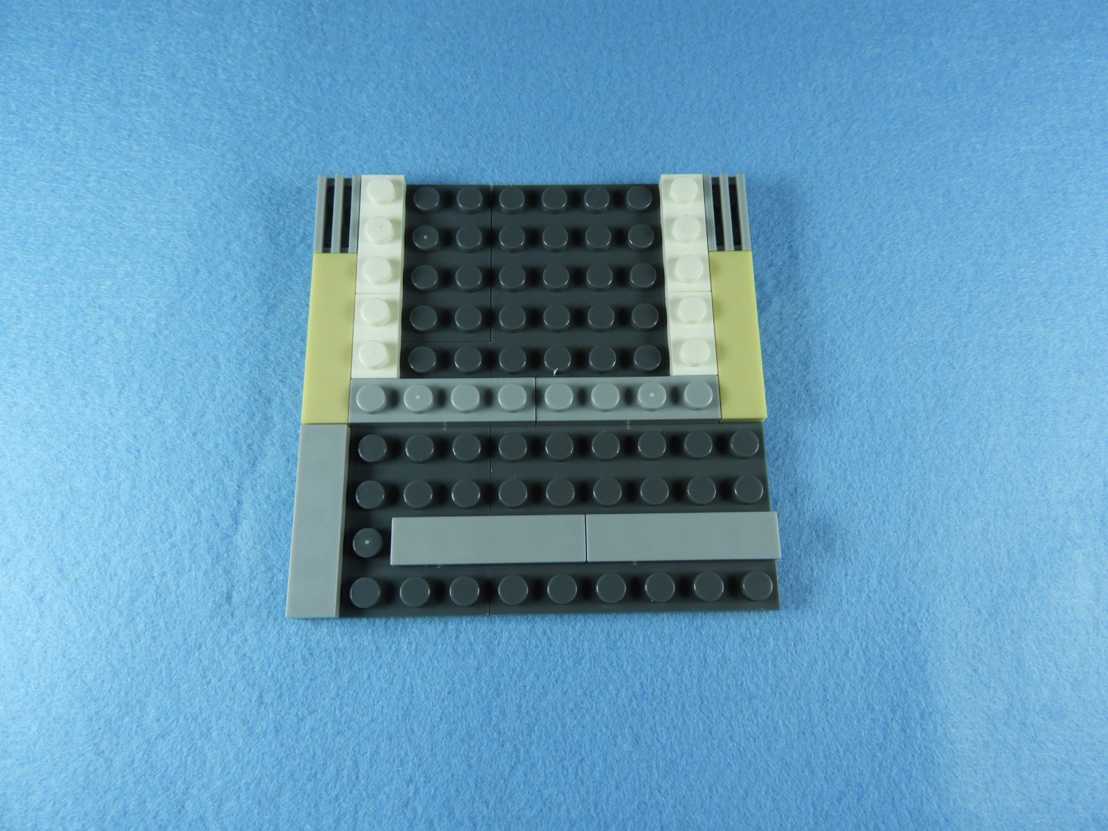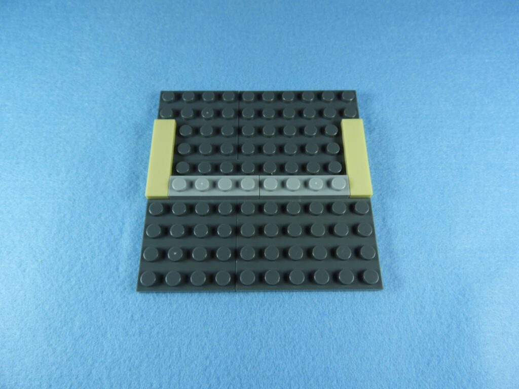 黒ブロックを1枚の正方形の板にして、黄色ブロックとグレーのブロックをのせると工程1番は完成します。
