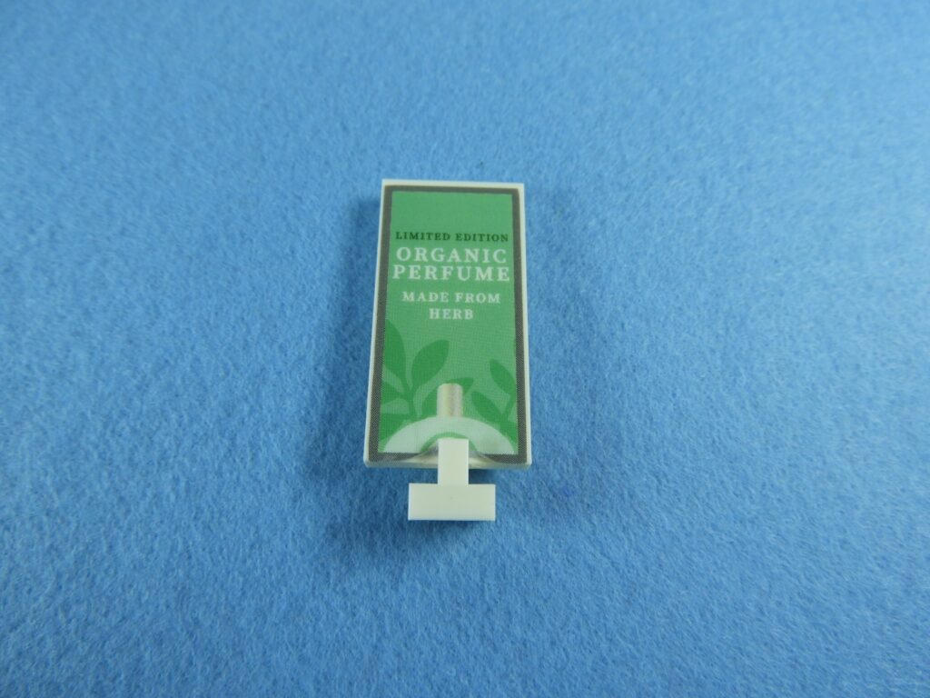 2.白板に緑の「ORGANIC PERFUME」シールを貼り、T字のブロックに取り付けます。
