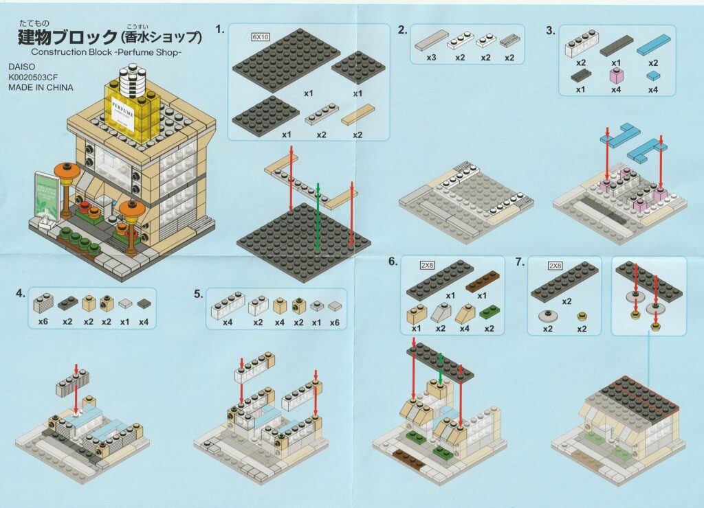 建物ブロック 香水ショップの説明書はこちら、工程1番から工程7番まで