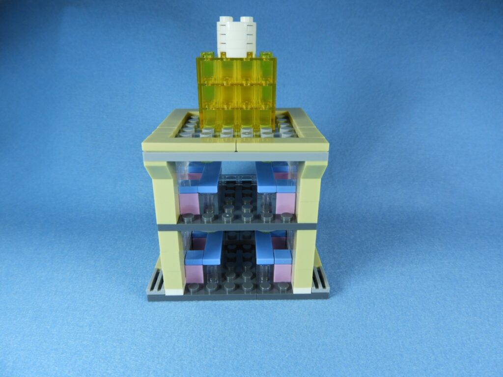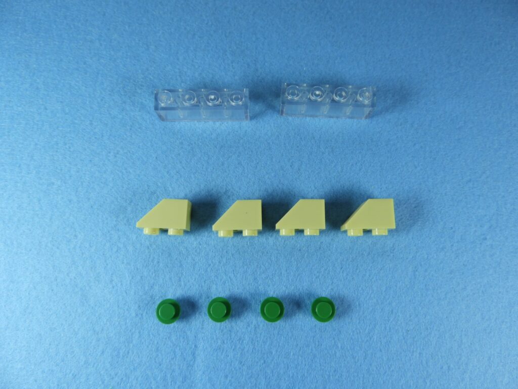 緑ブロック4個は1階正面、黄色ブロックは2階に取り付けると工程10番は完成します。
