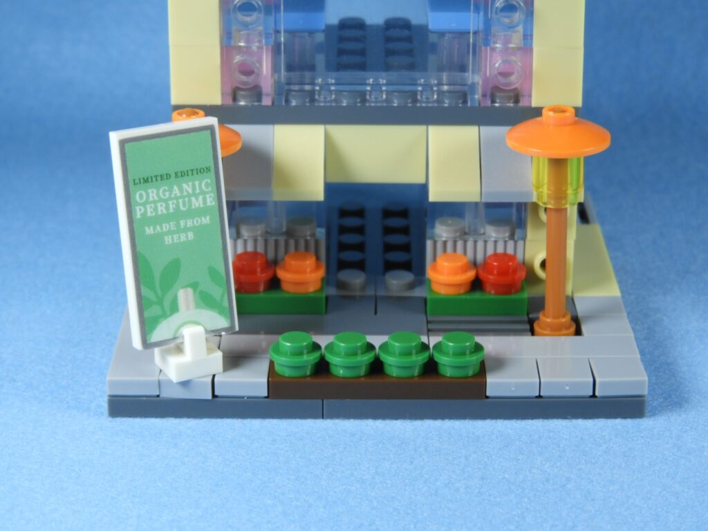 3.上記で組み立てた緑の看板を、香水ショップの左側に取り付けると香水ショップが完成します。作業お疲れ様でした!
