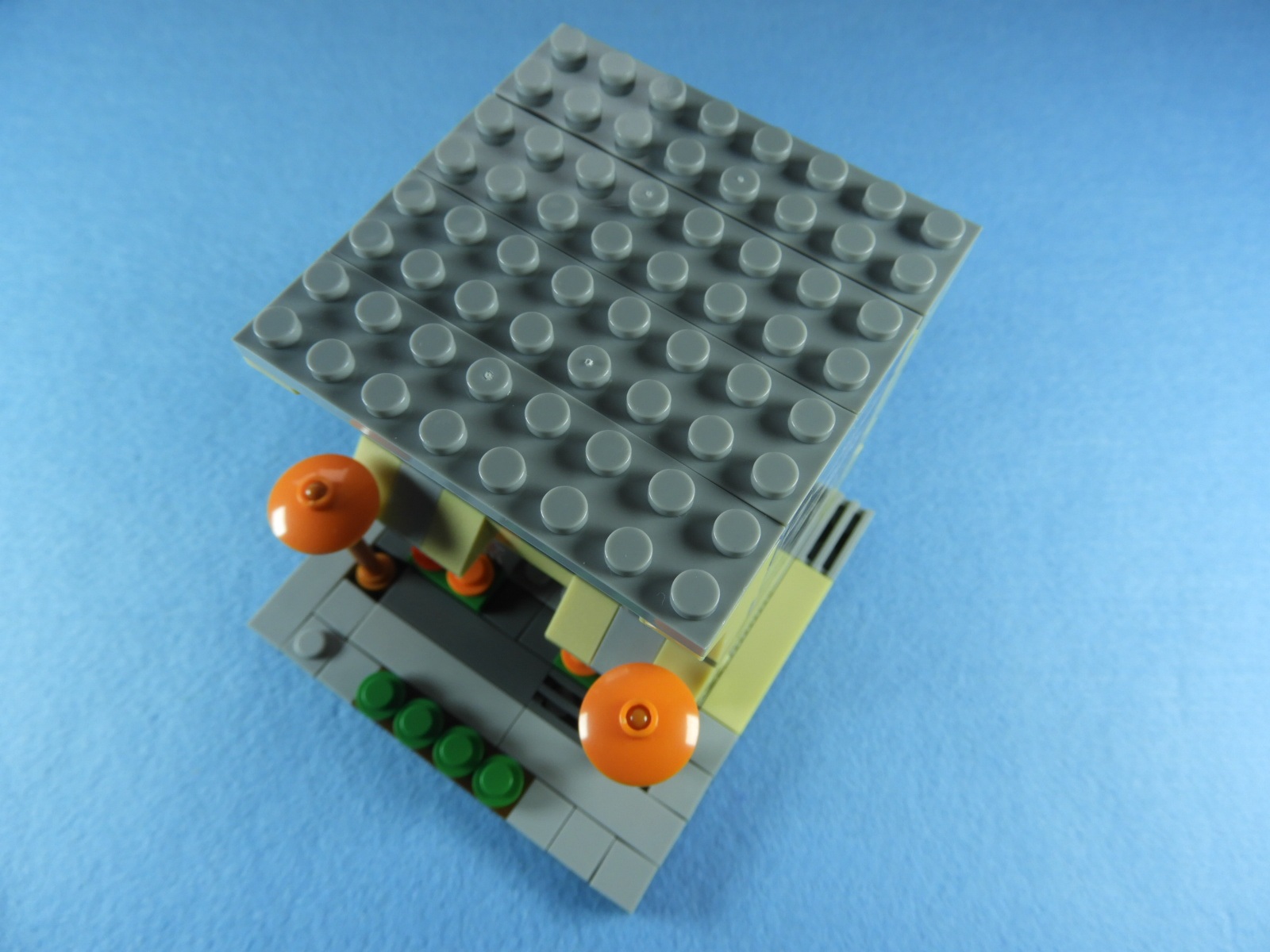 用意した黄色ブロック6個をショップの屋根の上に取り付けます。
