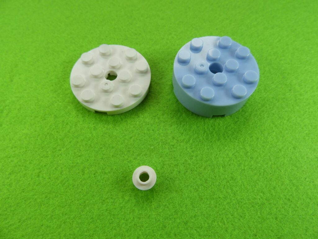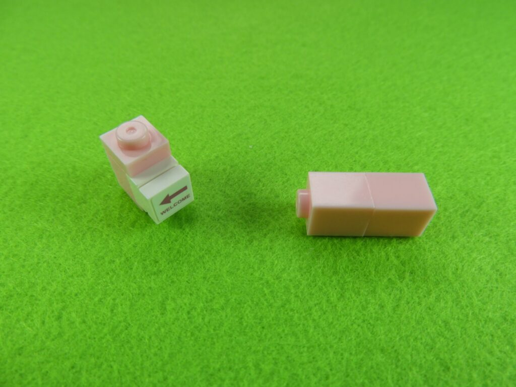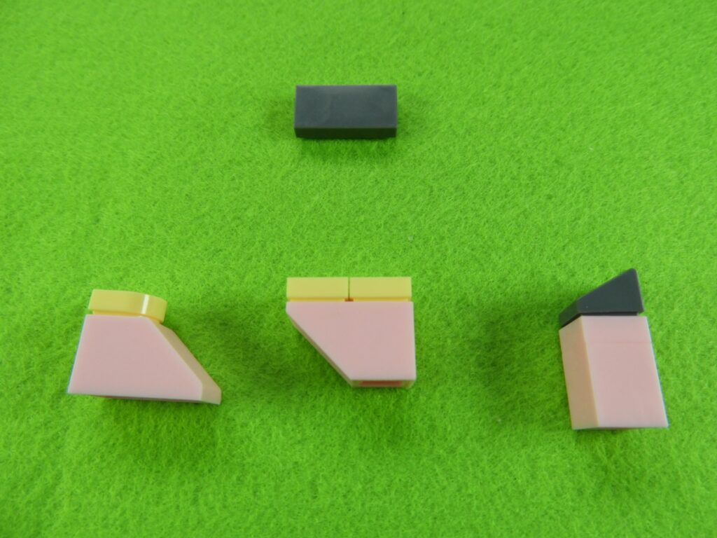 1.用意したブロックを下記写真のように組み立てます。左のブロックには、No.4のシールを貼り付けます。