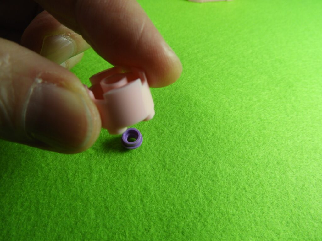 1.この紫のブロックをピンクブロックに取り付けますが、ちょっとはまりがきついのではまらないようなら下記の手順でやってみてください。