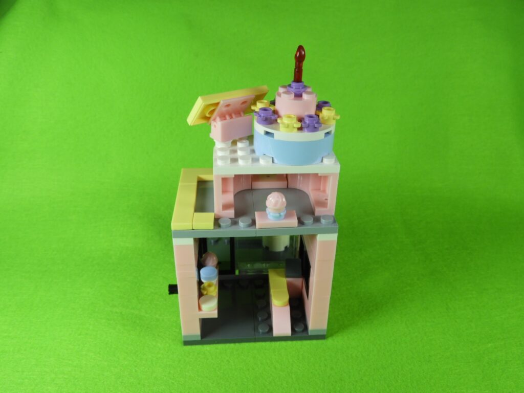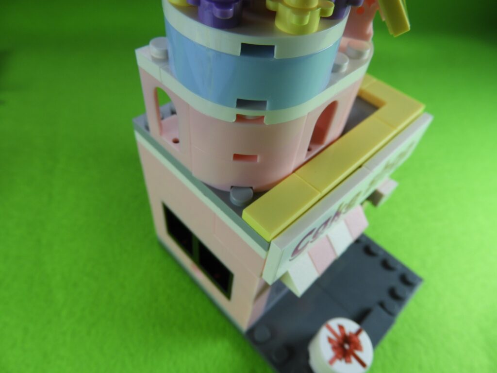 工程13番は、上記で組み立てたブロックを建物の上にのせるとケーキショップが完成します♪作業お疲れ様でした!