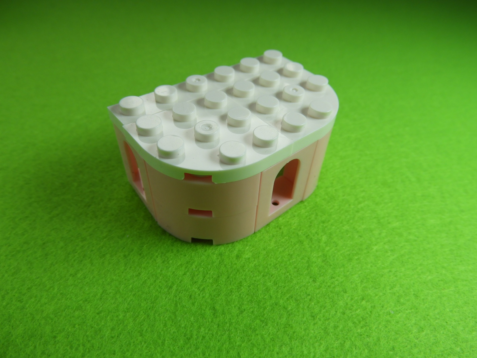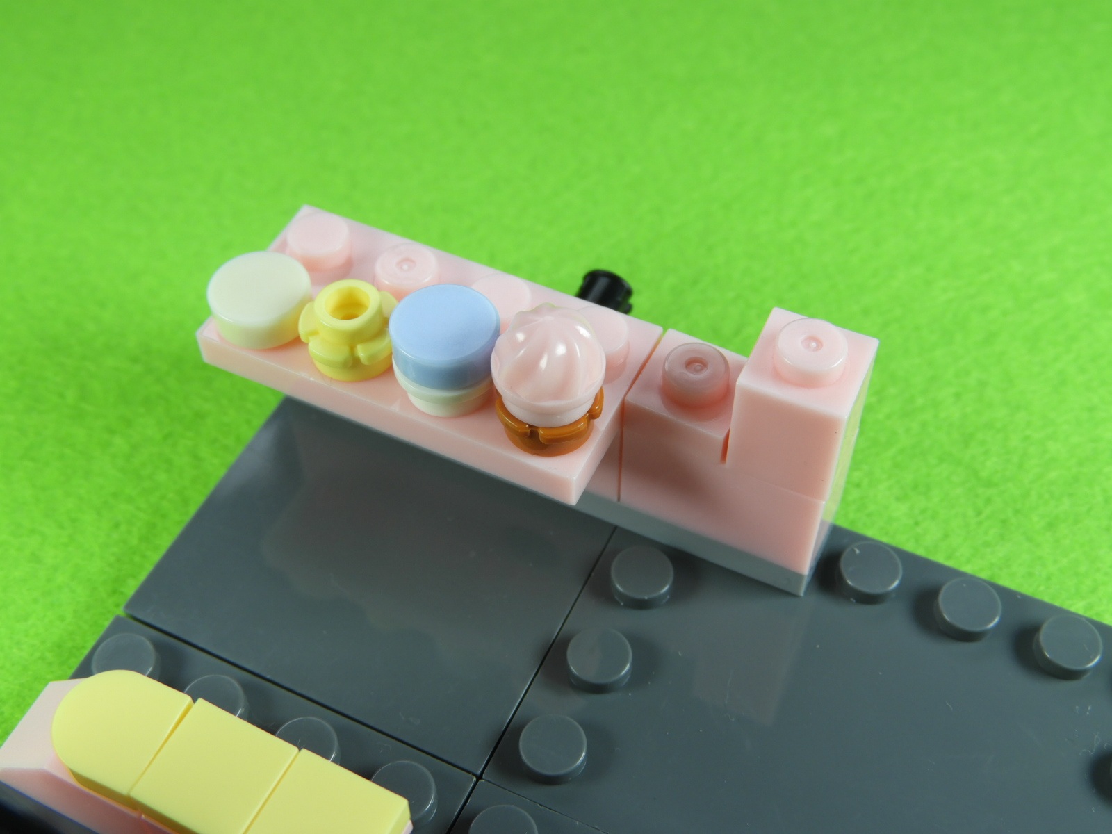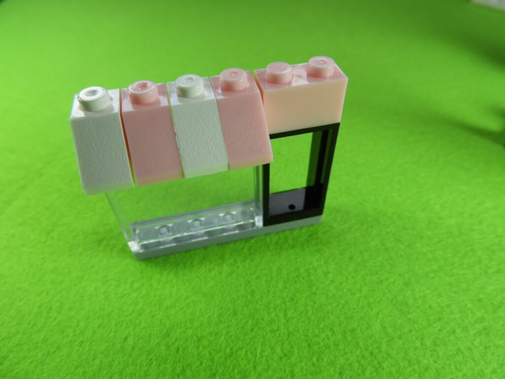 3.用意したブロックと上記組み立てたブロックを取り付けると工程4番は出来上がります。これはケーキショップのケーキになりますよ。