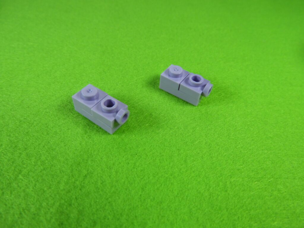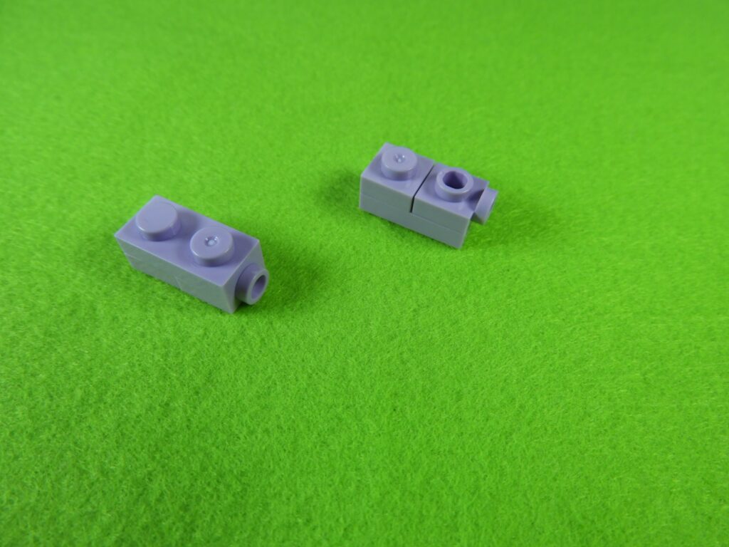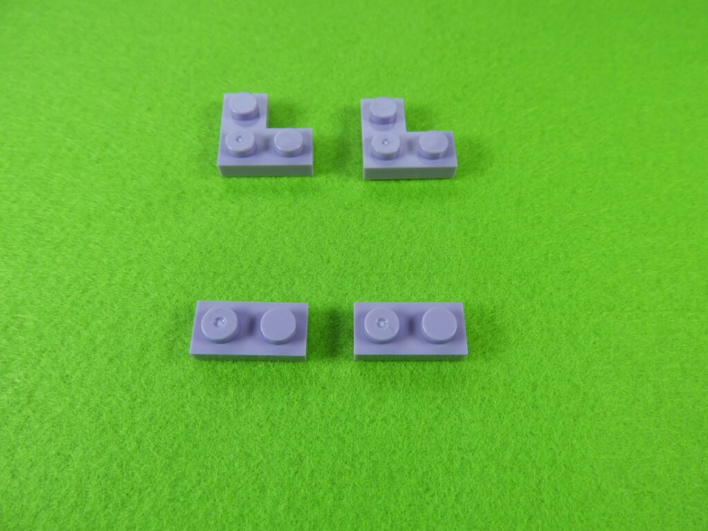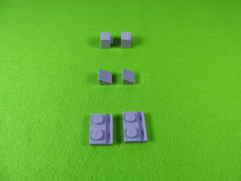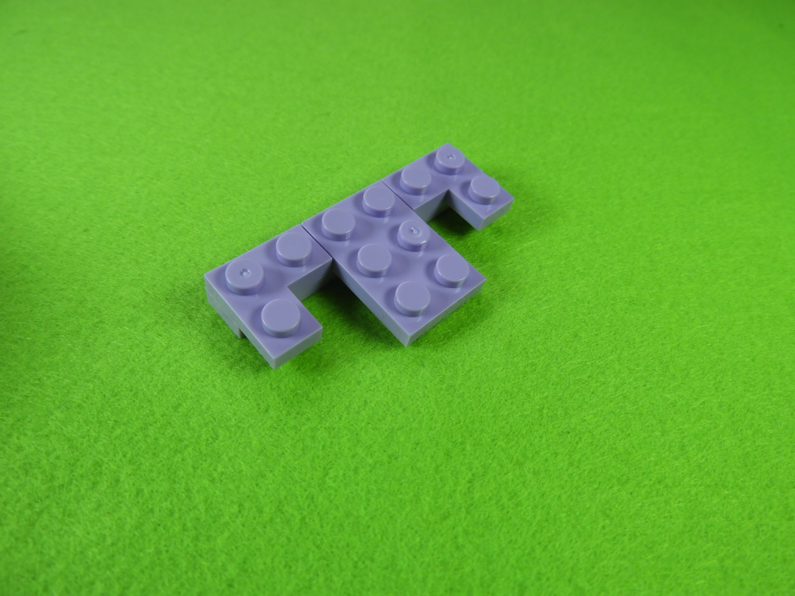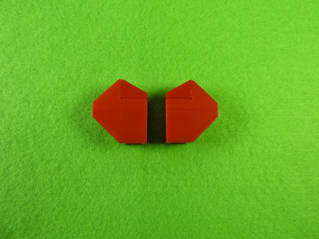 1.用意したブロックを下記写真のように組み立てますが、左右で取り付け位置が違うのでよく確認してくださいね。左側はブロック(1x2)は上に取り付け、右側はブロック(1x2)は下に取り付けます。