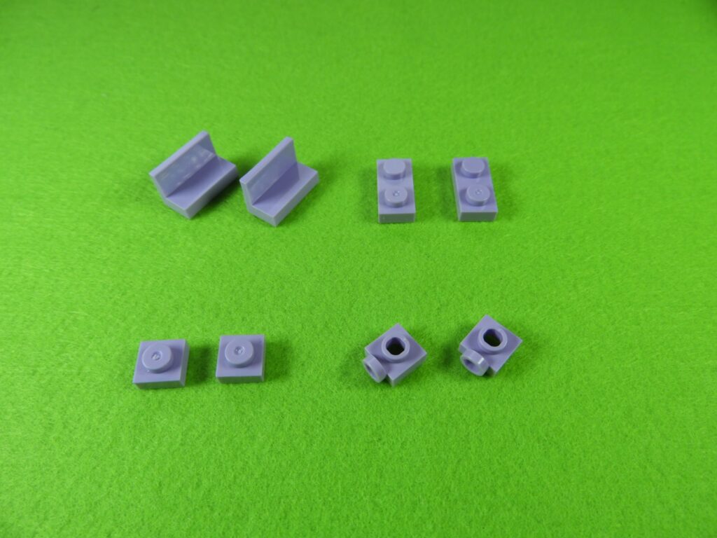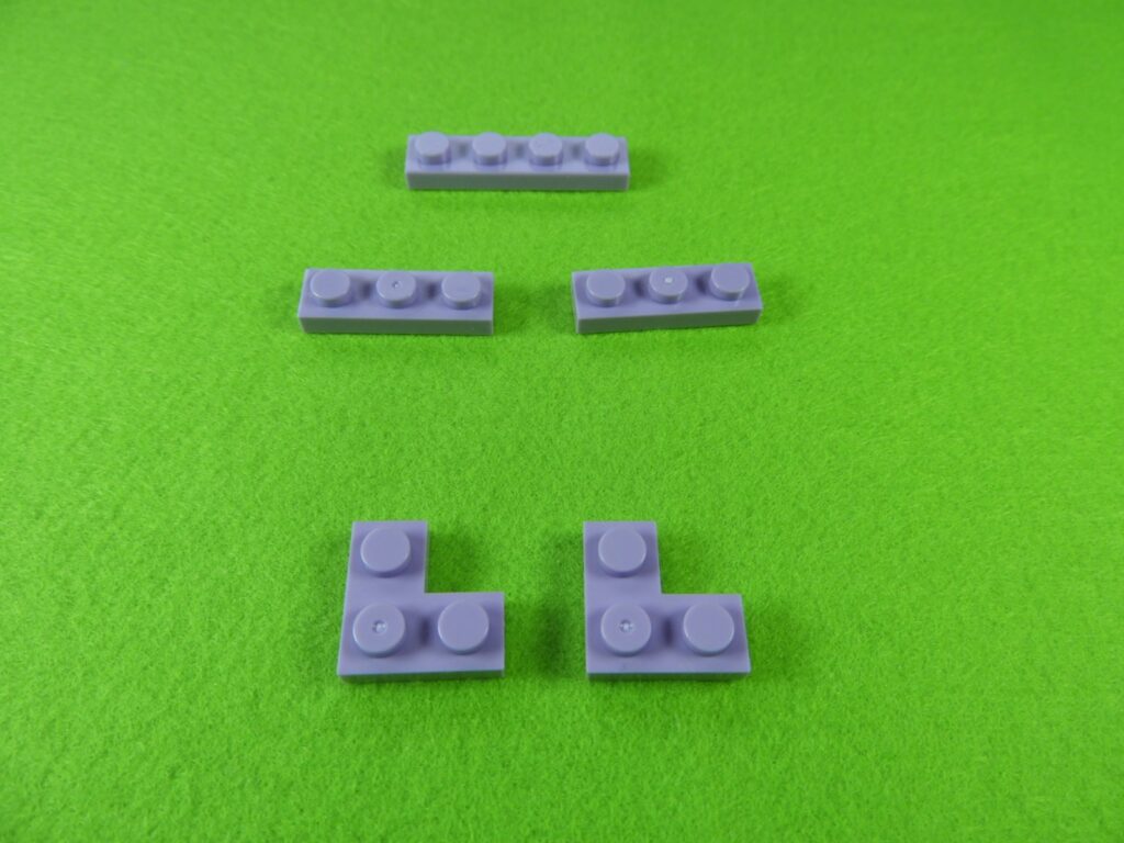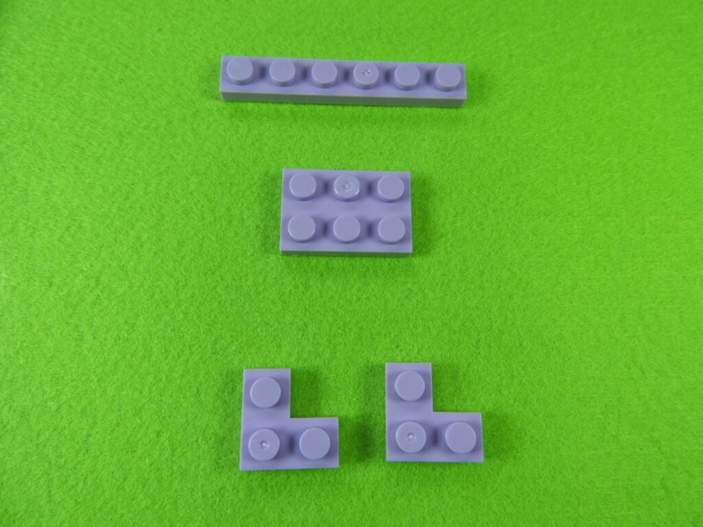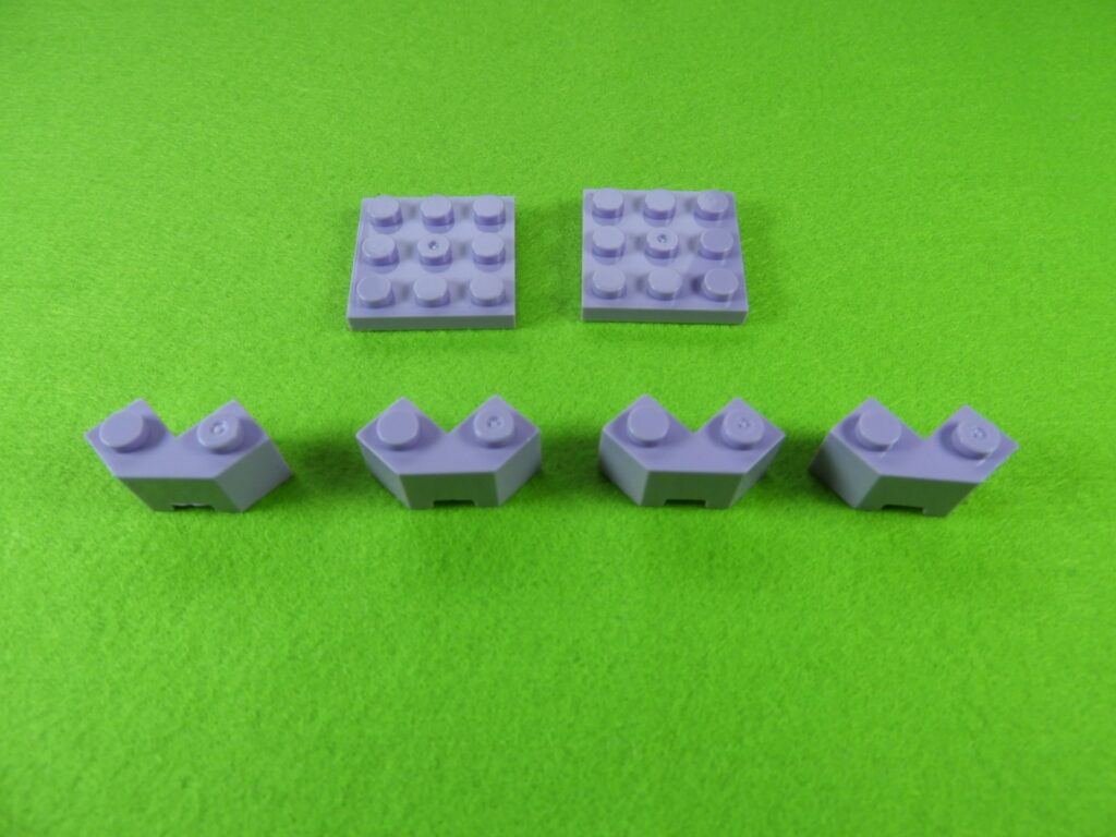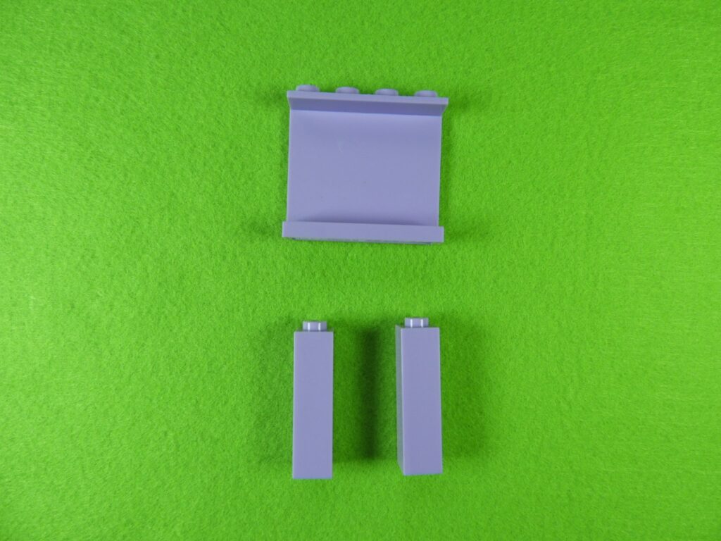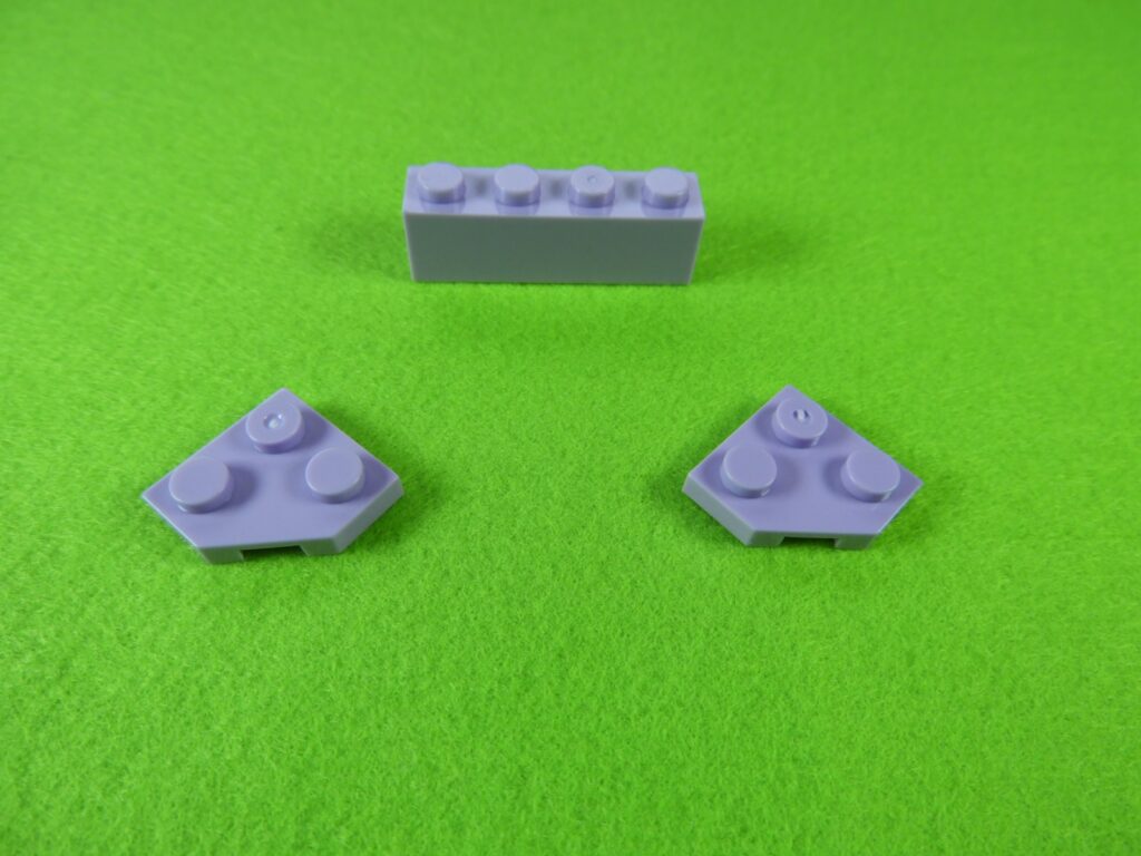 1.用意したブロックを下記写真のように組み立てますが、左右で取り付け位置が違うのでよく確認してくださいね。左側はブロック(1x2)は上に取り付け、右側はブロック(1x2)は下に取り付けます。